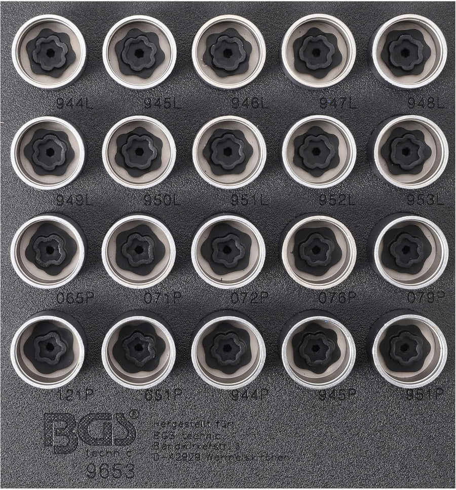 BGS 9558 | Werkstattwageneinlage 1/6: Felgenschloss-Werkzeug-Satz für Opel (Typ C) | 20-tlg. Opel |