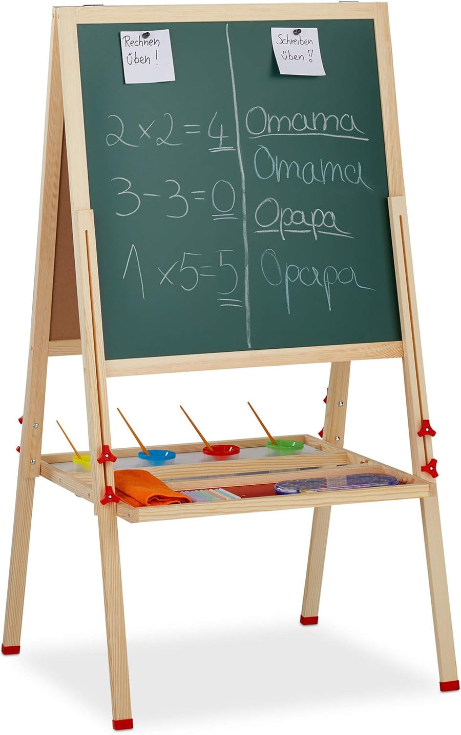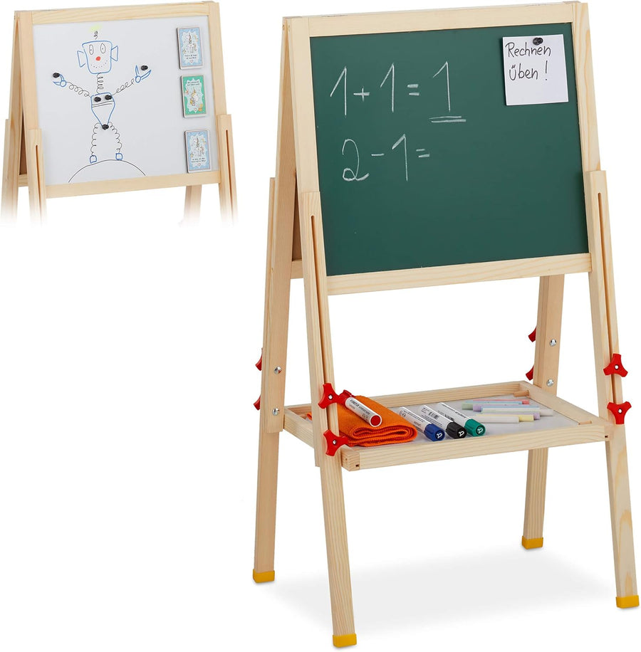 Relaxdays Standtafel Kinder, höhenverstellbar & magnetisch, Holz, Whiteboard & Kreidetafel, 122-160