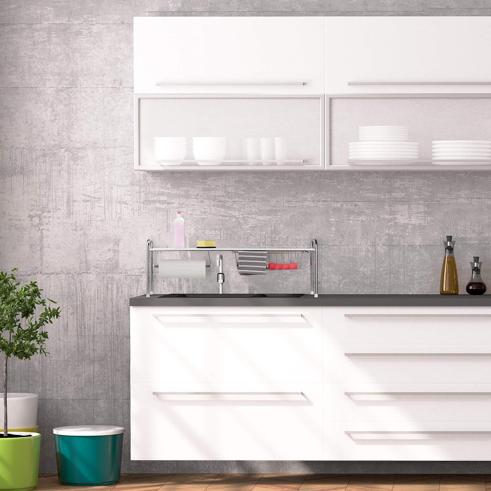 Relaxdays Spülbeckenregal mit Küchenrollenhalter, Küchenregal mit Korb, Metall, H x B x T: 32 x 94 x