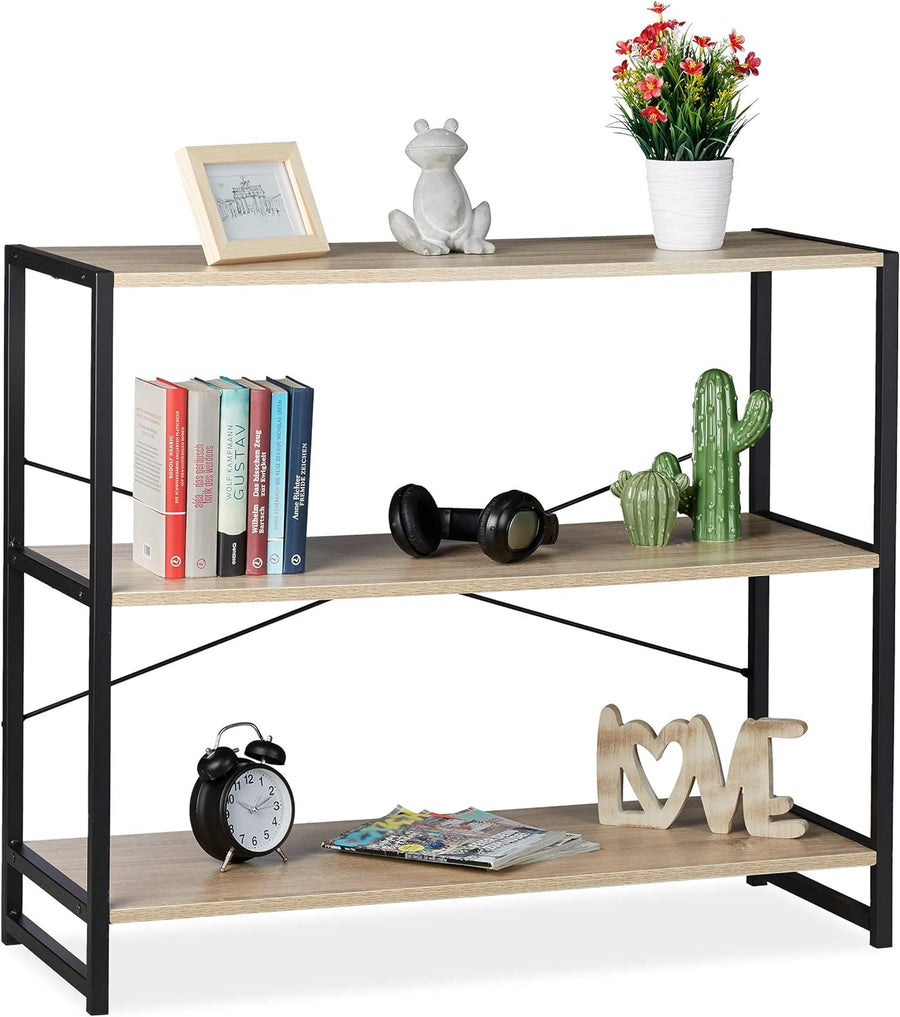 Relaxdays Standregal, Industrie Design, Bücherregal quer mit 3 Fächern, HBT: 80 x 95 x 35 cm, PB/Met