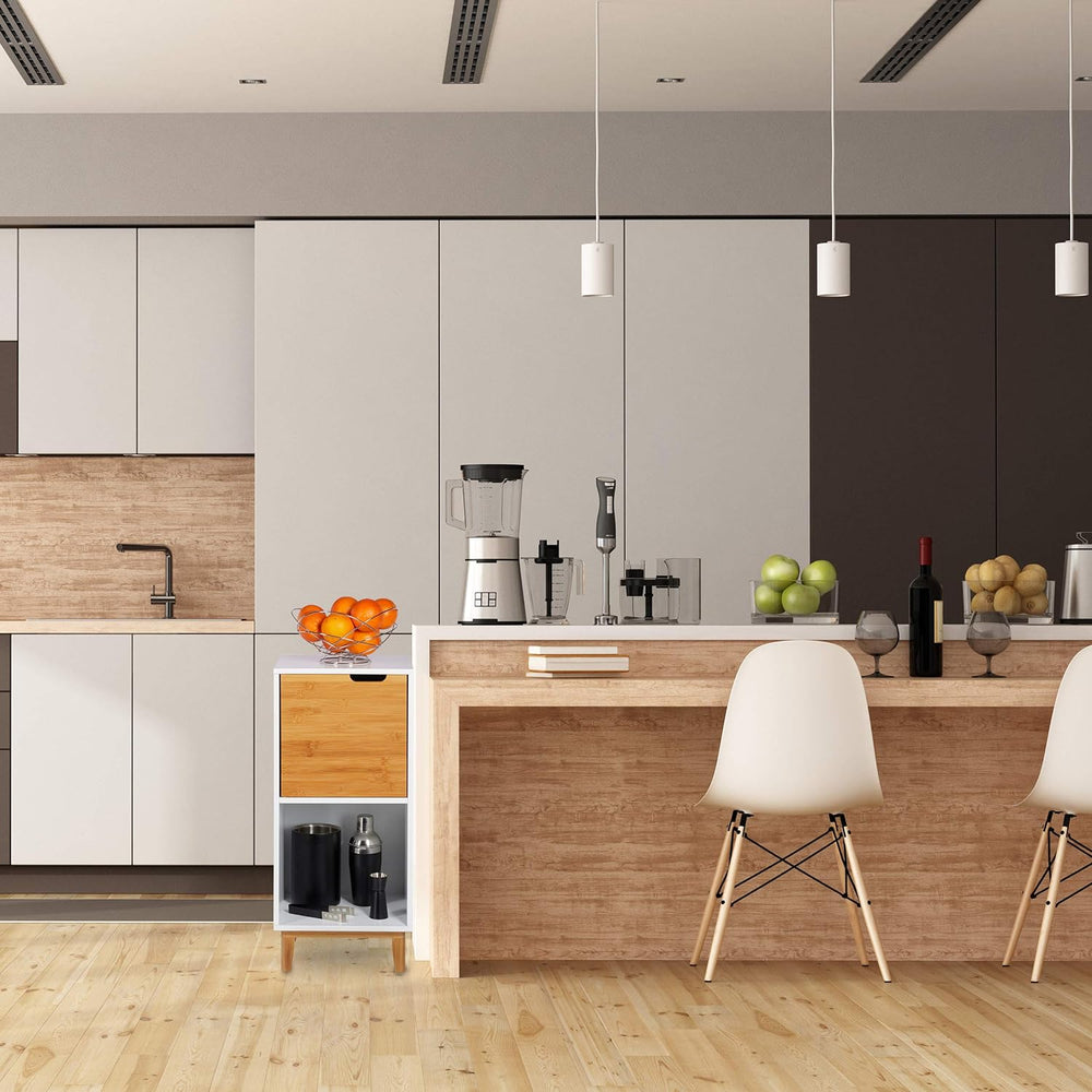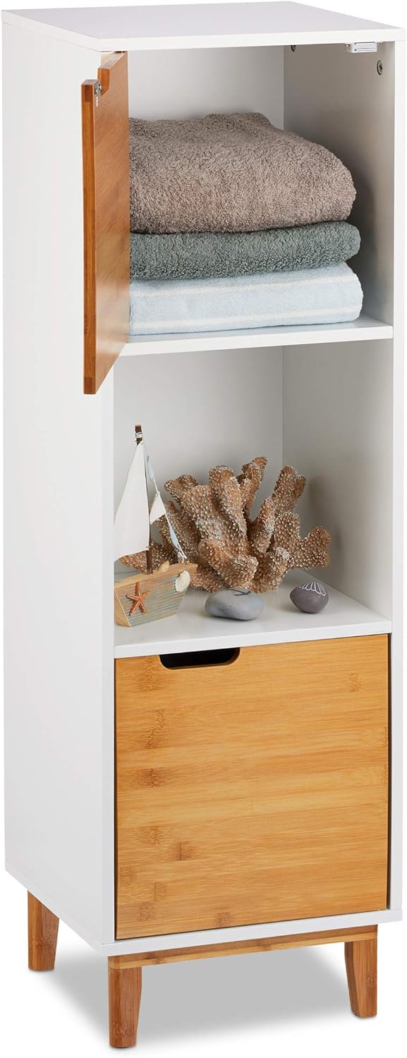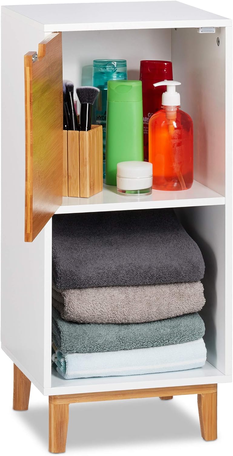 Relaxdays Standregal weiss, Beistellschrank aus MDF und Bambus, Wohnzimmerregal, skandinavisch, HBT