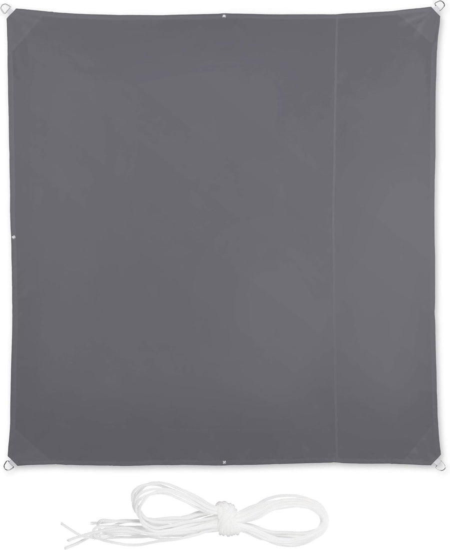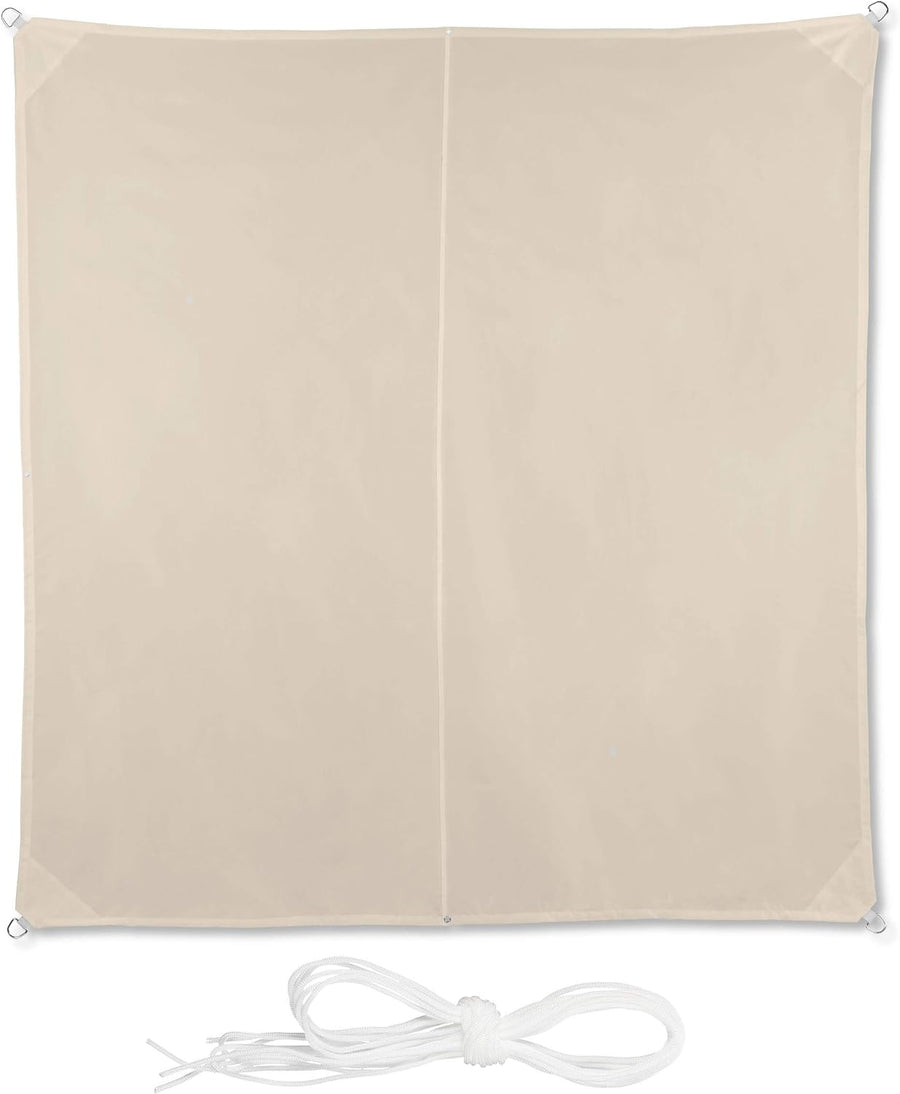 Relaxdays Sonnensegel quadratisch, wasserabweisend, UV-Schutz, mit Spannseilen, Terrasse, Balkonsege