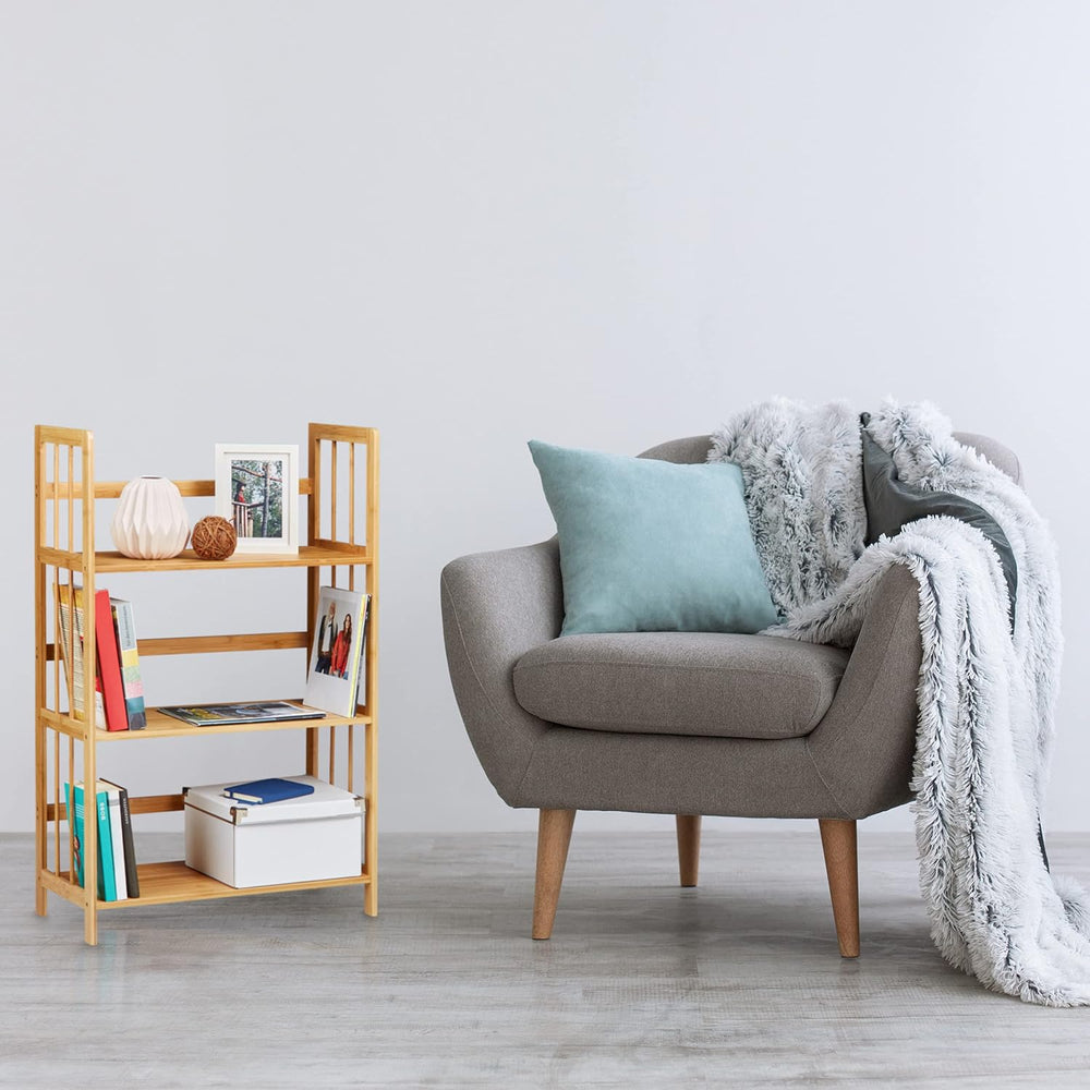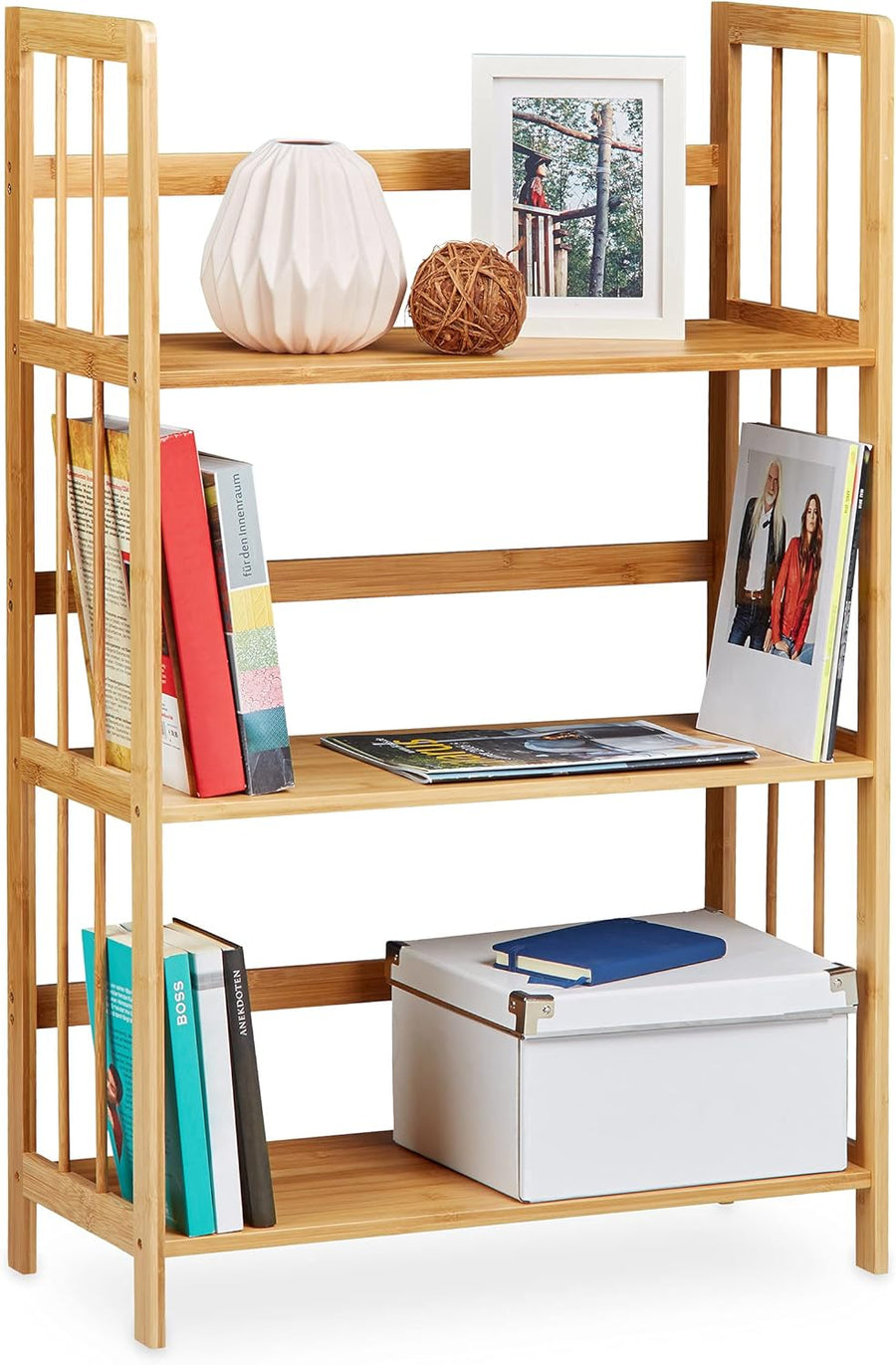 Relaxdays Standregal Bambus, Holz, 3 Ablagen, HxBxT: 88 x 55 x 26 cm, Bad Regal, Schuhregal, Bambusr