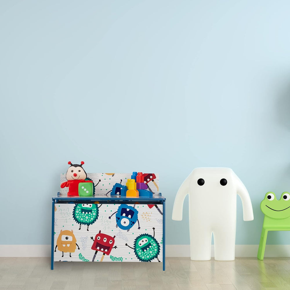 Relaxdays Spielzeugtruhe, Monster-Design, Spielzeugkiste mit Deckel, HBT: 50x60x36,5 cm, MDF, Spielz