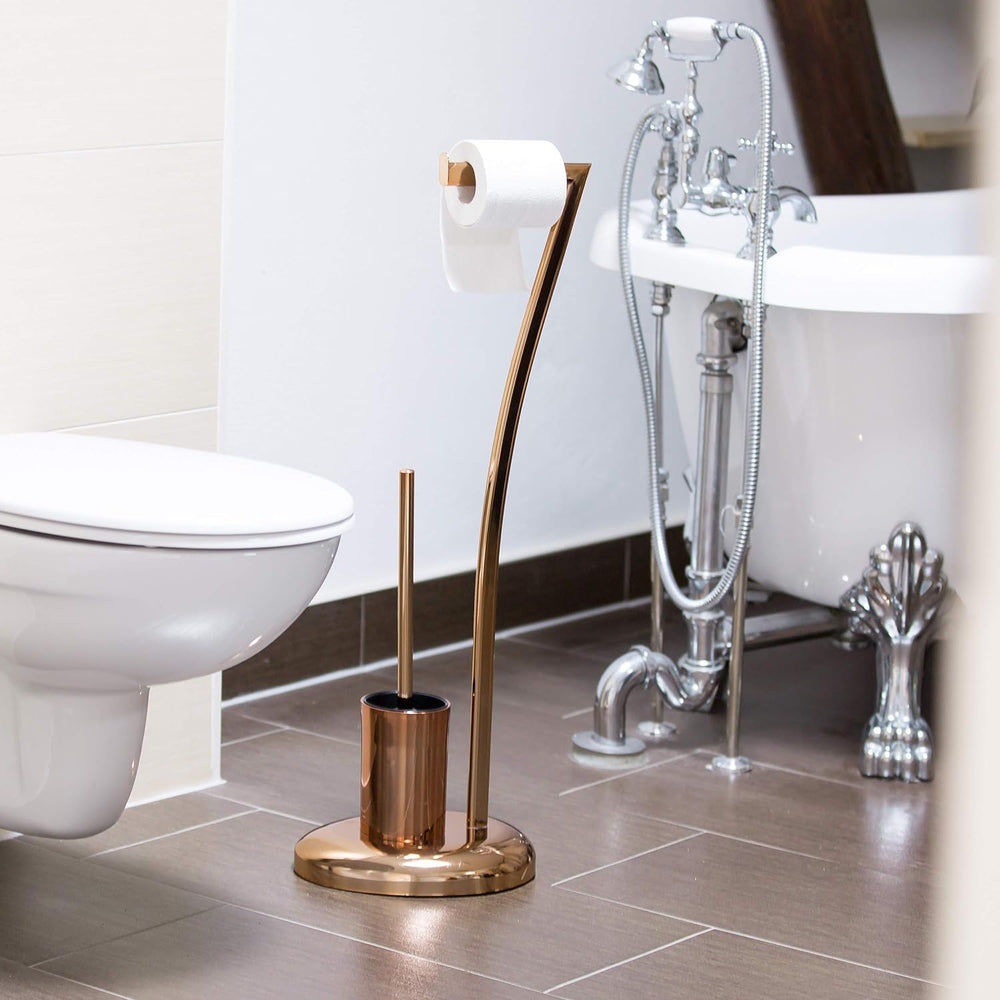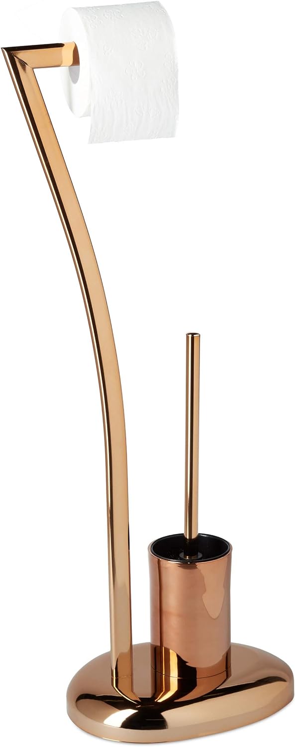 Relaxdays Stand WC Garnitur WIMEDO HBT: 75 x 21 x 26 cm Toilettenbürstenhalter aus Edelstahl mit Kup