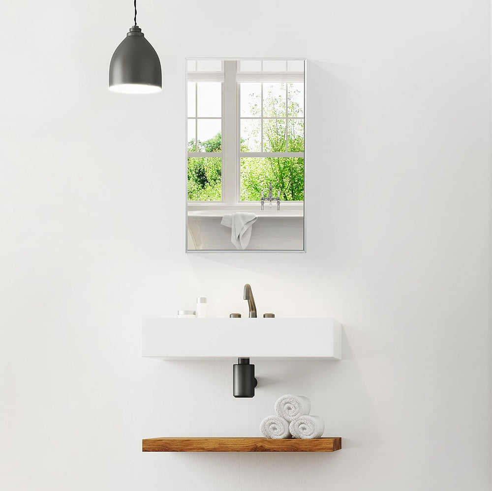 Relaxdays Spiegelschrank Bad, Hängeschrank, eintüriger Wandschrank aus Stahl, mit 3 Ablagen, HBT: 56