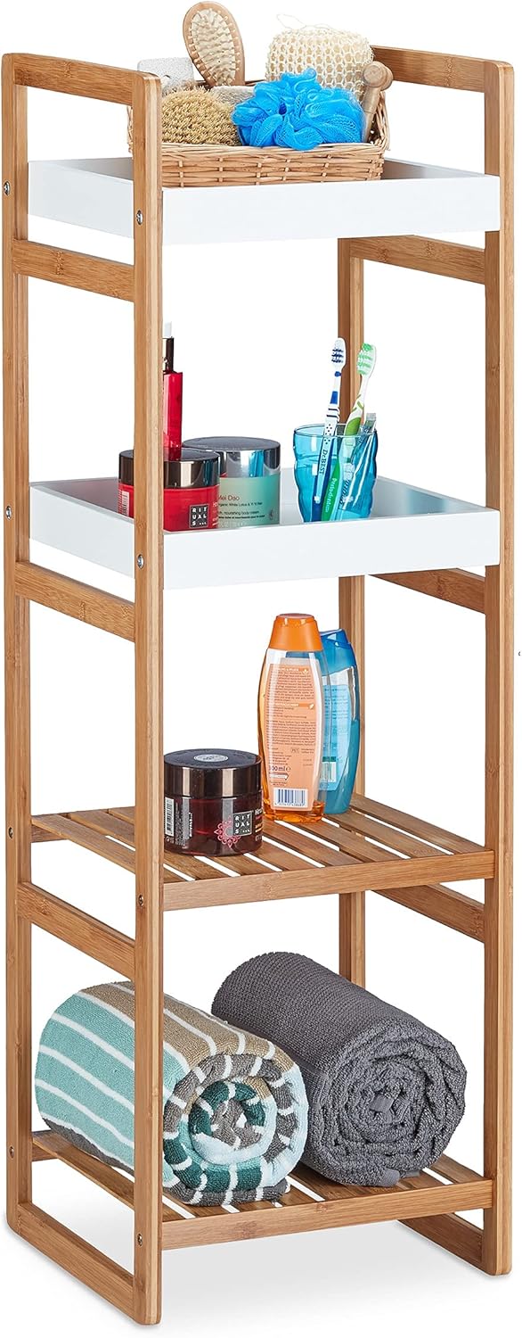 Relaxdays Standregal mit 4 Fächern, offenes Küchenregal aus Bambus, Badezimmerregal HBT: 110x36x33 c