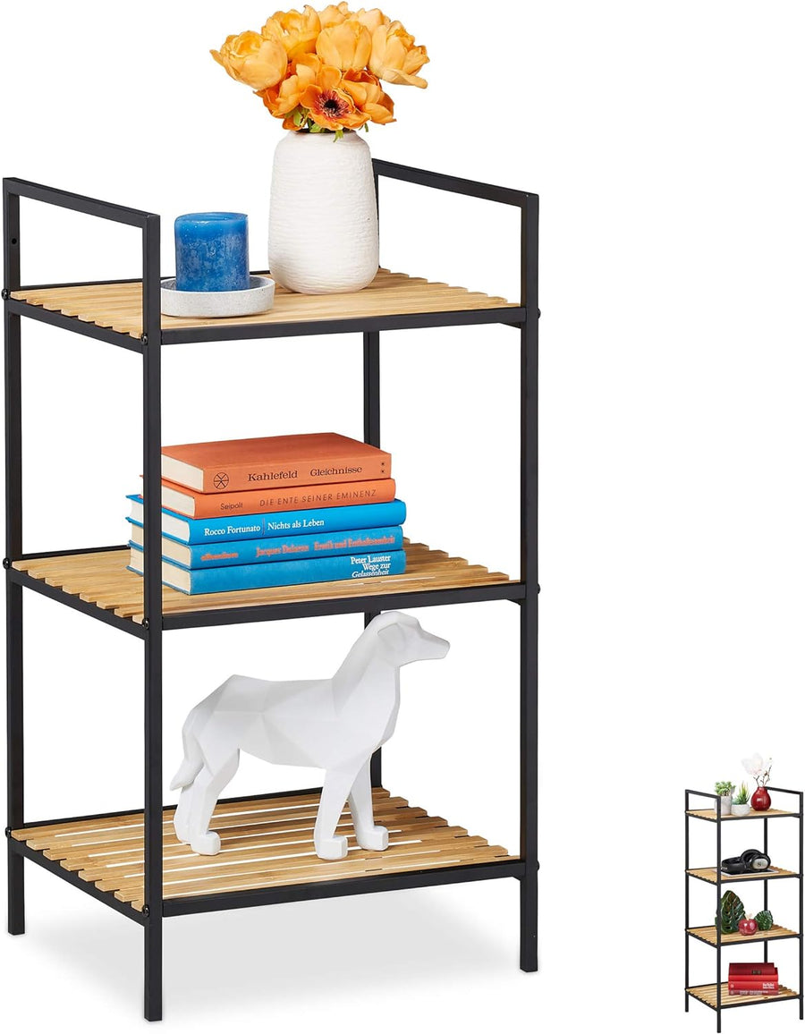 Relaxdays Standregal 3 Ablagen, Bambus & Metall, offenes Regal, Stehregal Flur, HxBxT: 71 x 39 x 32,
