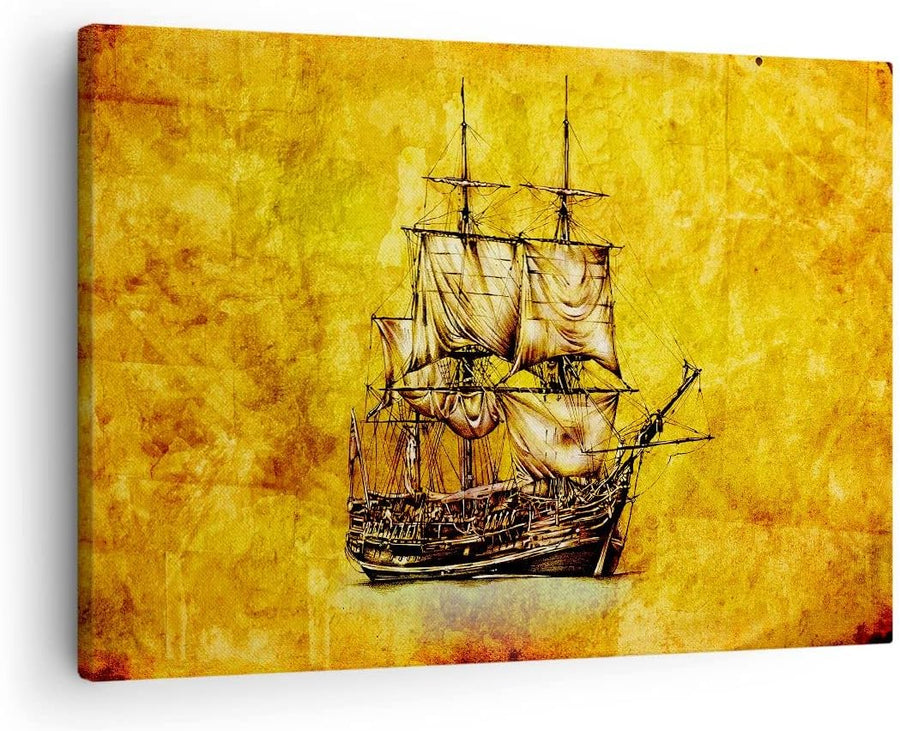 Bilder auf Leinwand Piratenschiff Ozean Schatz Leinwandbild 70x50cm Wandbilder Dekoration Wohnzimmer