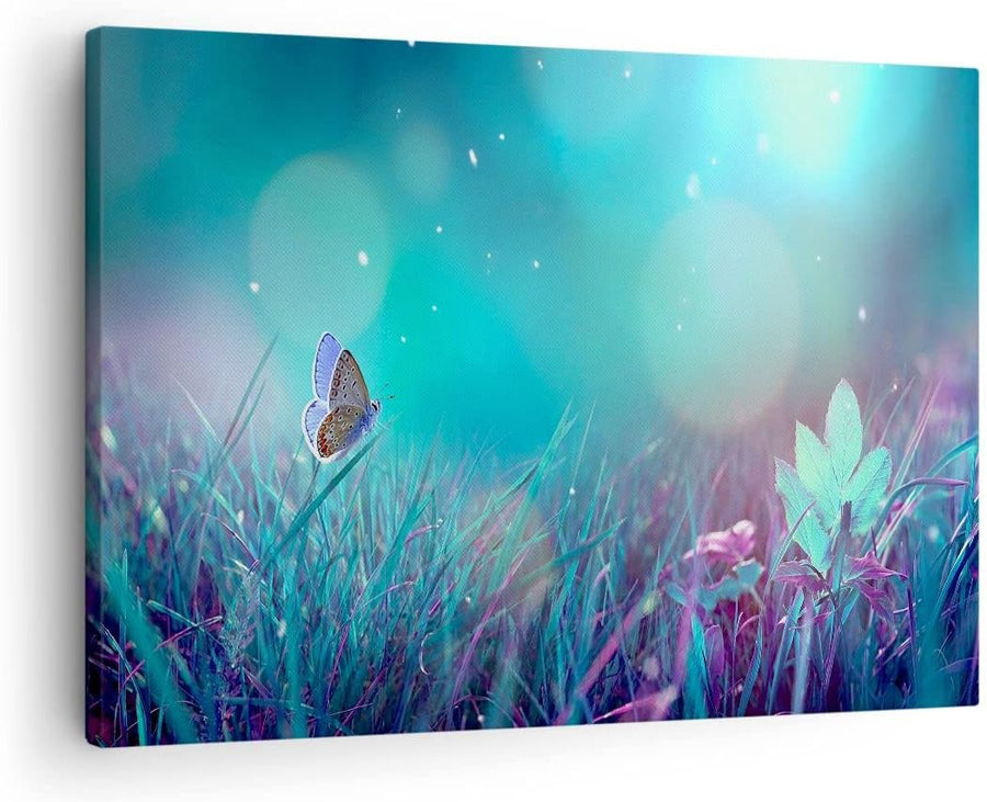 Bilder auf Leinwand Schmetterling Wiese Blume Leinwandbild 70x50cm Wandbilder Dekoration Wohnzimmer