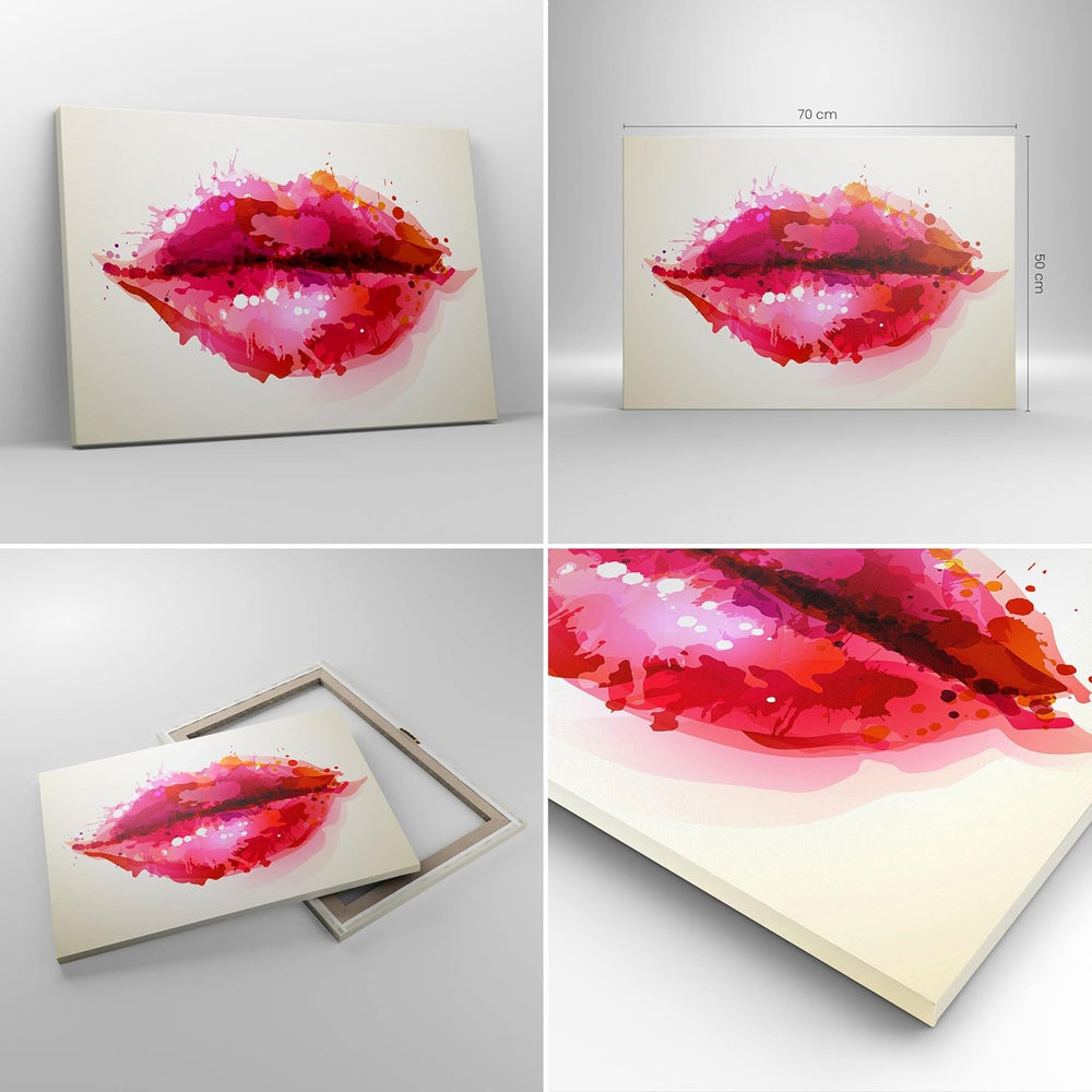 Bilder auf Leinwand Rote Lippen glänzend Lippe Glanz Leinwandbild 70x50cm Wandbilder Dekoration Wohn