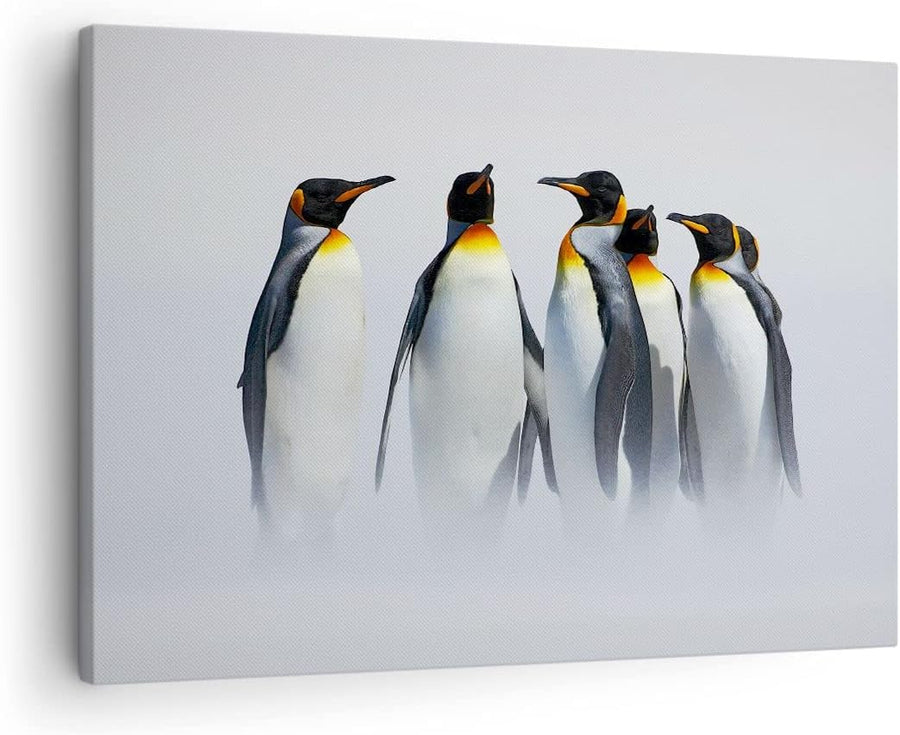 Bilder auf Leinwand Pinguine Winter Schnee Spaziergang Leinwandbild 70x50cm Wandbilder Dekoration Wo