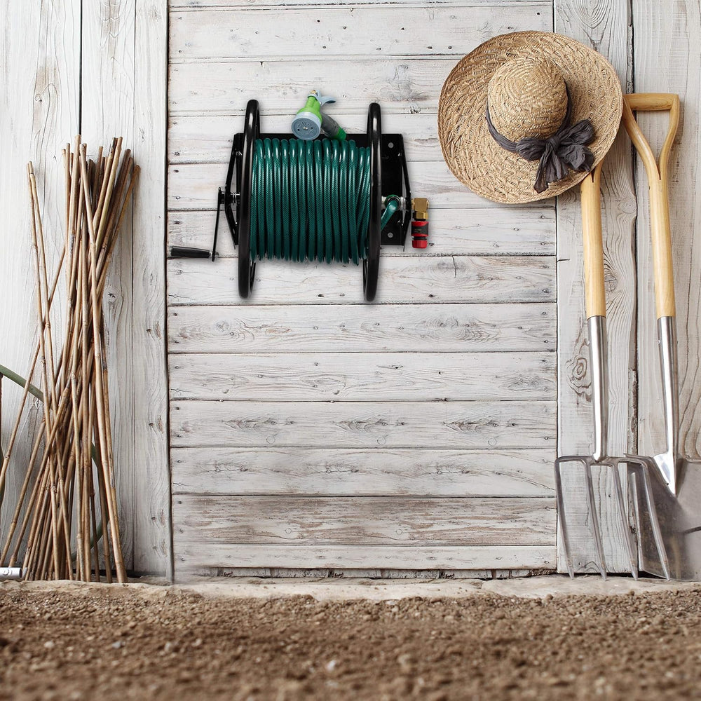 Relaxdays Schlauchtrommel, Stahl, 60 m Schlauch, Klickkupplungen, Wandschlauchhalter, Bodenmontage,