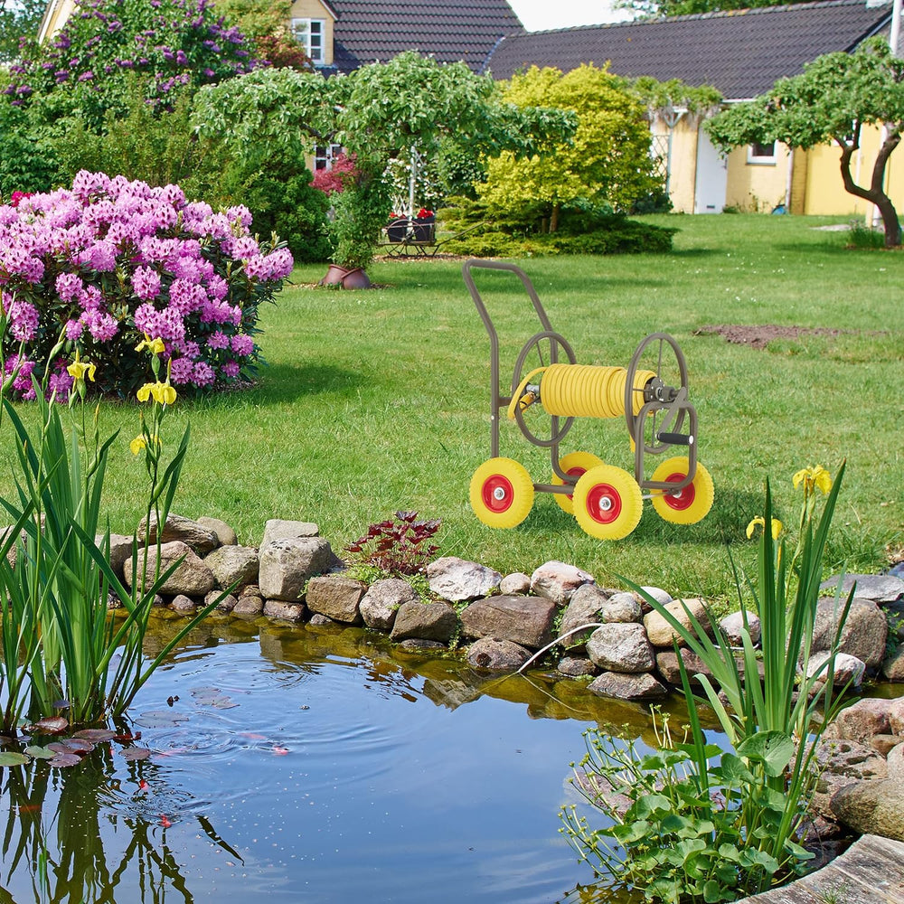 Relaxdays Schlauchwagen XL, fahrbare Schlauchtrommel, Metall, für 60m Schlauch, 4 Räder, mit Kurbel,