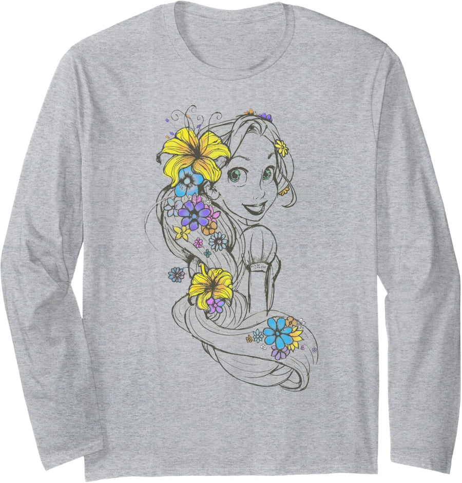 Disney Tangled Rapunzel Floral Hair Sketch Portrait Langarmshirt