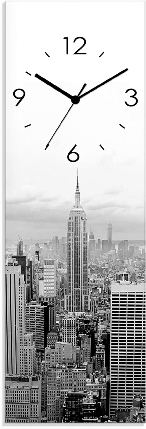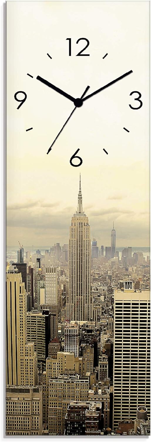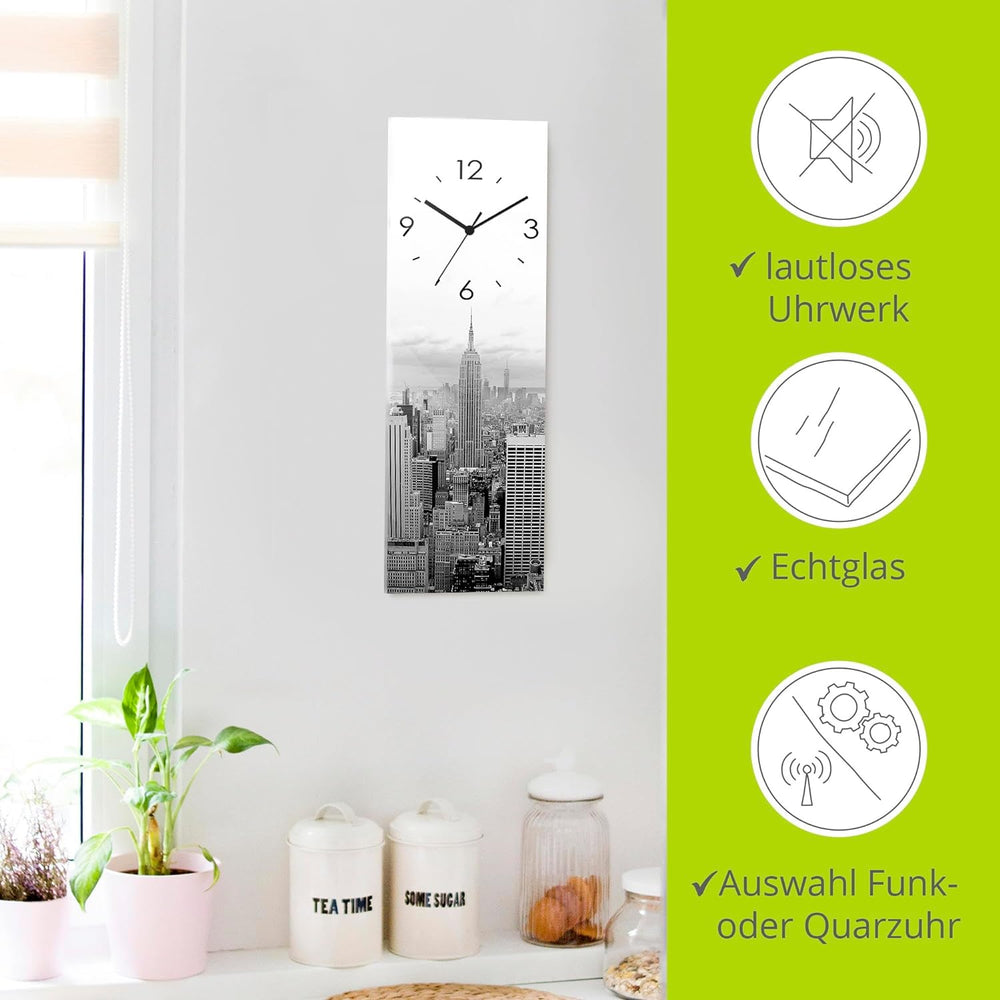 ARTLAND Wanduhr ohne Tickgeräusche Glas Quarzuhr 20x60 cm Rechteckig Lautlos New York Skyline Städte