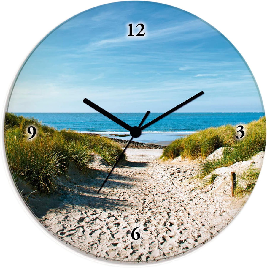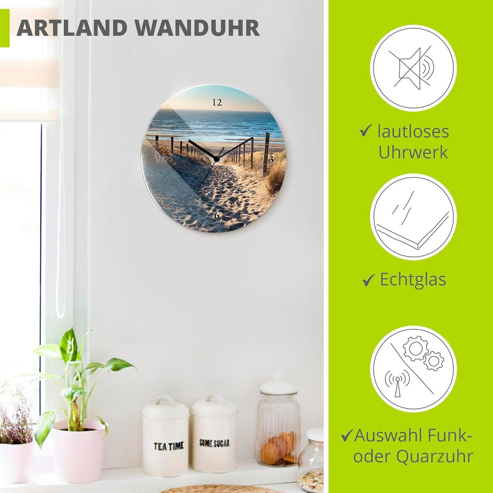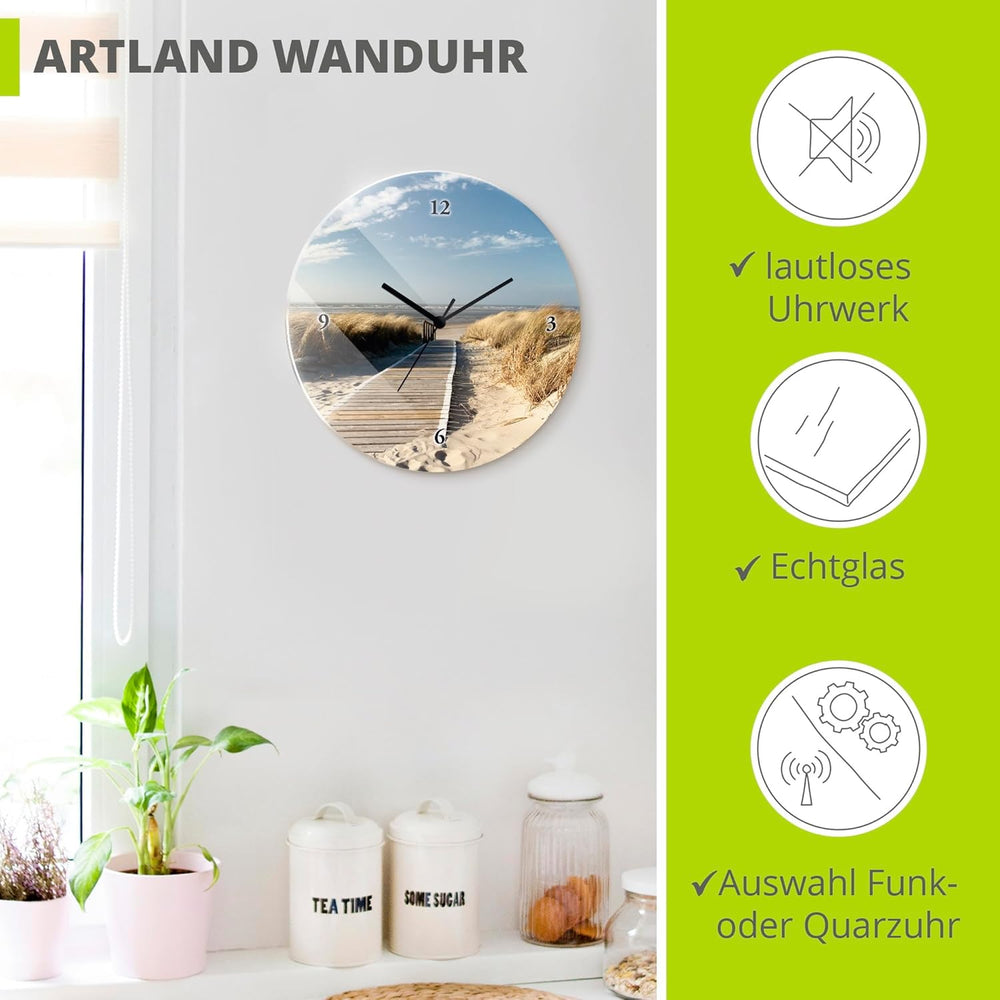 ARTLAND Wanduhr ohne Tickgeräusche Glas Funkuhr Ø 30 cm Rund Lautlos Strand Sanddünen Weg zur See St