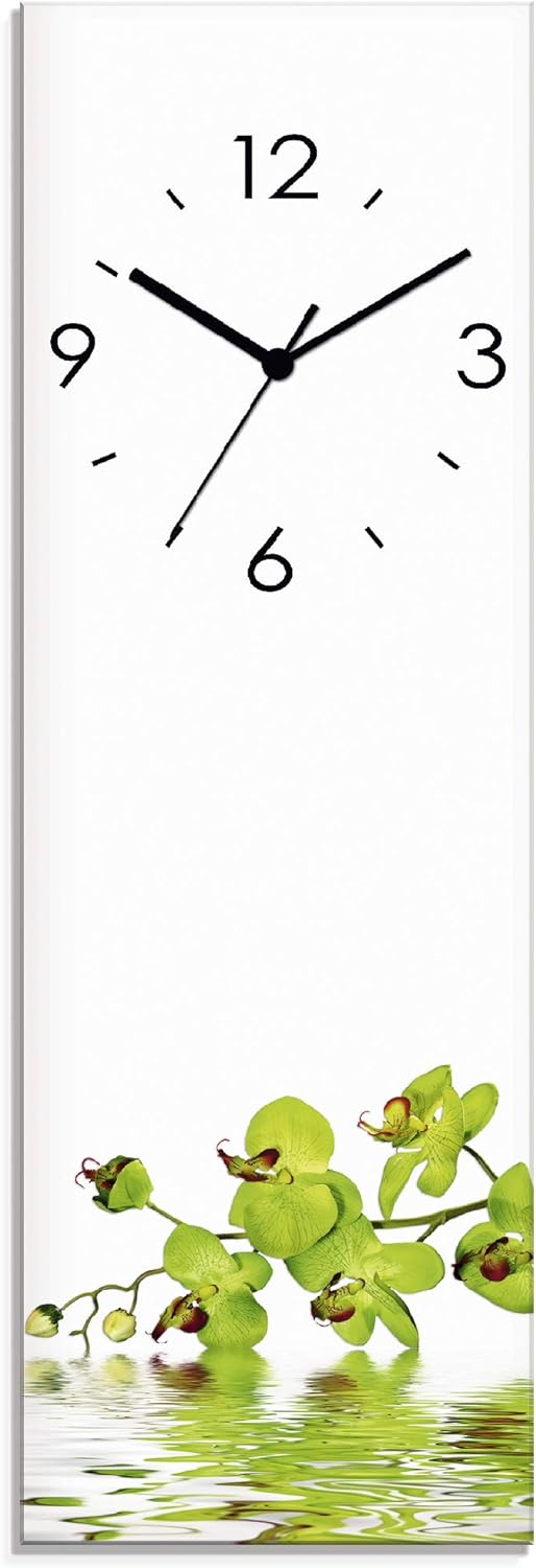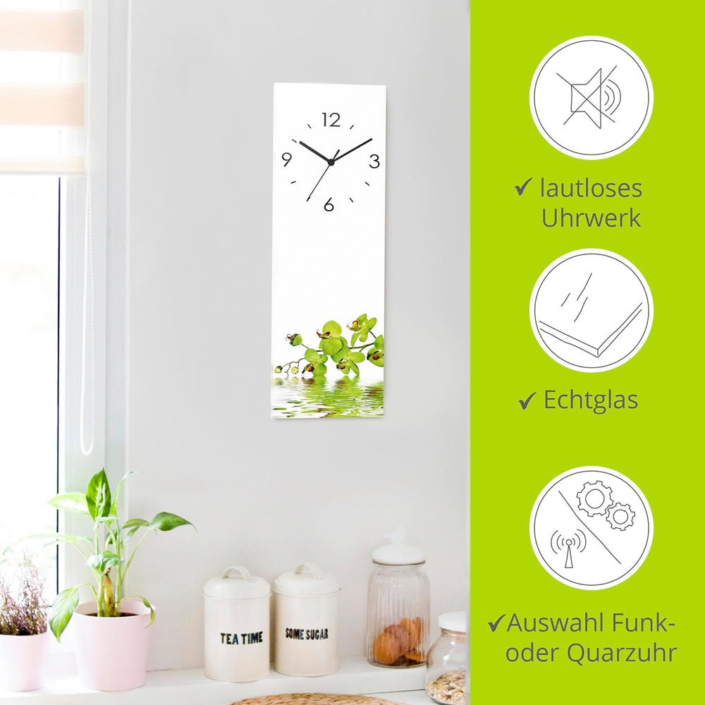ARTLAND Wanduhr ohne Tickgeräusche Glas Quarzuhr 20x60 cm Rechteckig Lautlos Blumen Orchidee Natur D