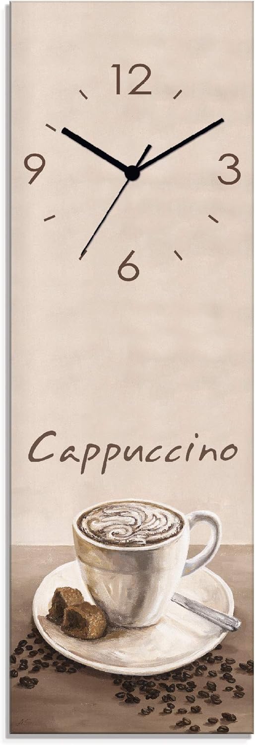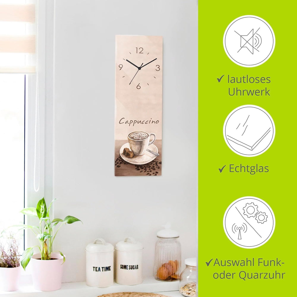 ARTLAND Wanduhr ohne Tickgeräusche Glas Quarzuhr 20x60 cm Rechteckig Lautlos Kaffee Coffee Italia Ca