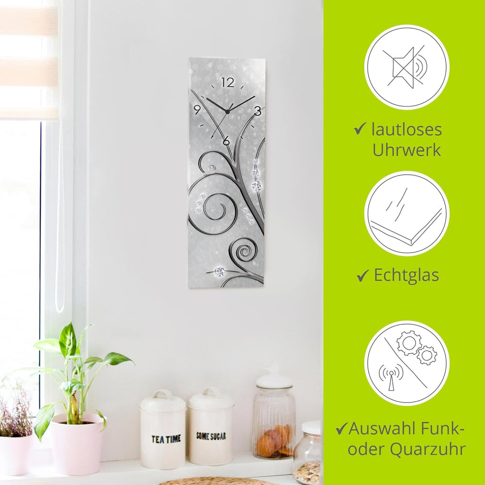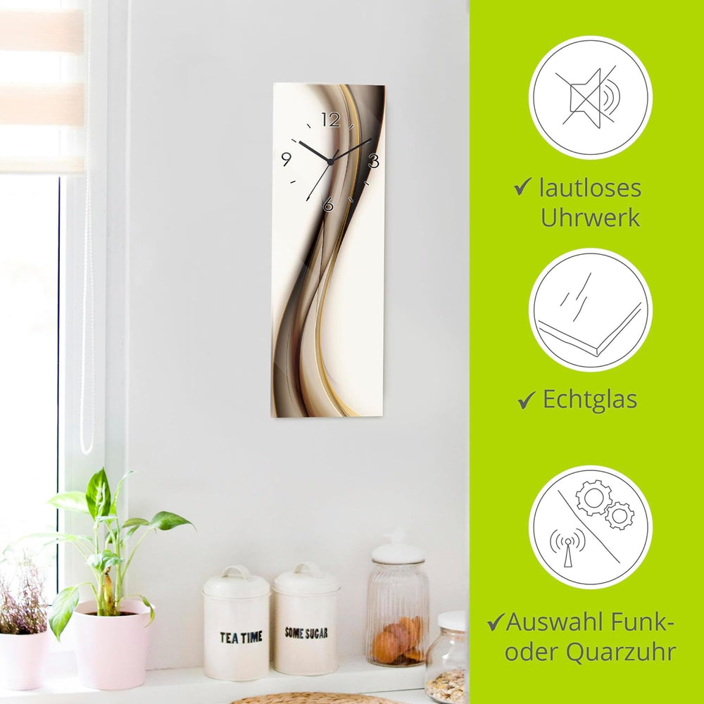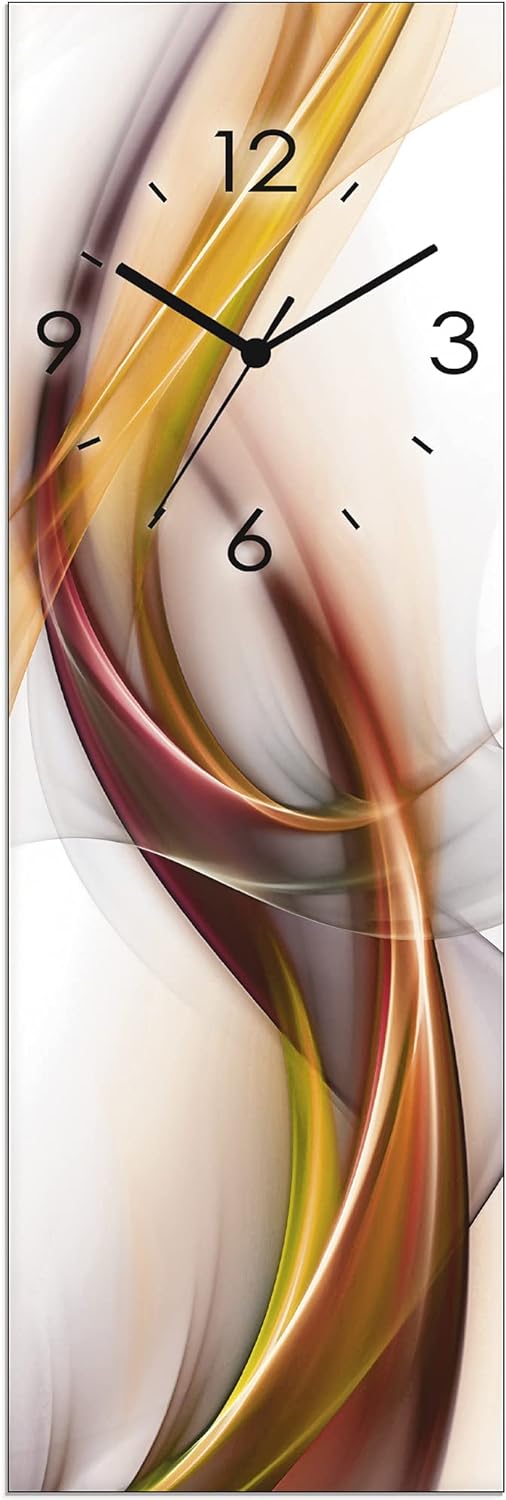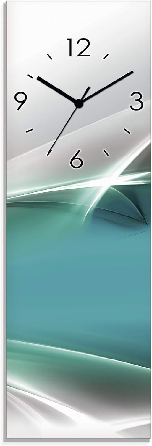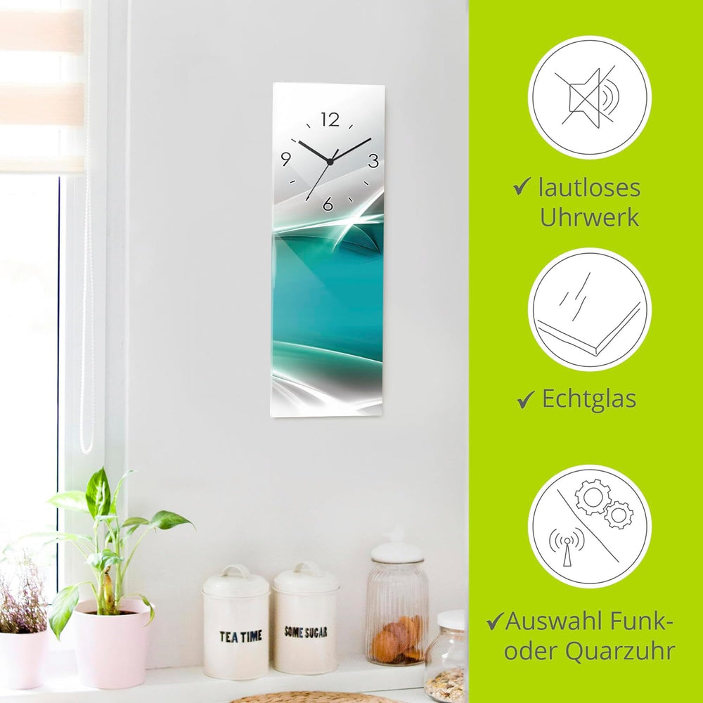 ARTLAND Wanduhr ohne Tickgeräusche Glas Quarz Uhr 20x60 cm Rechteckig Lautlos Abstrakte Bilder Kunst