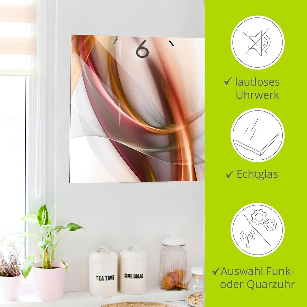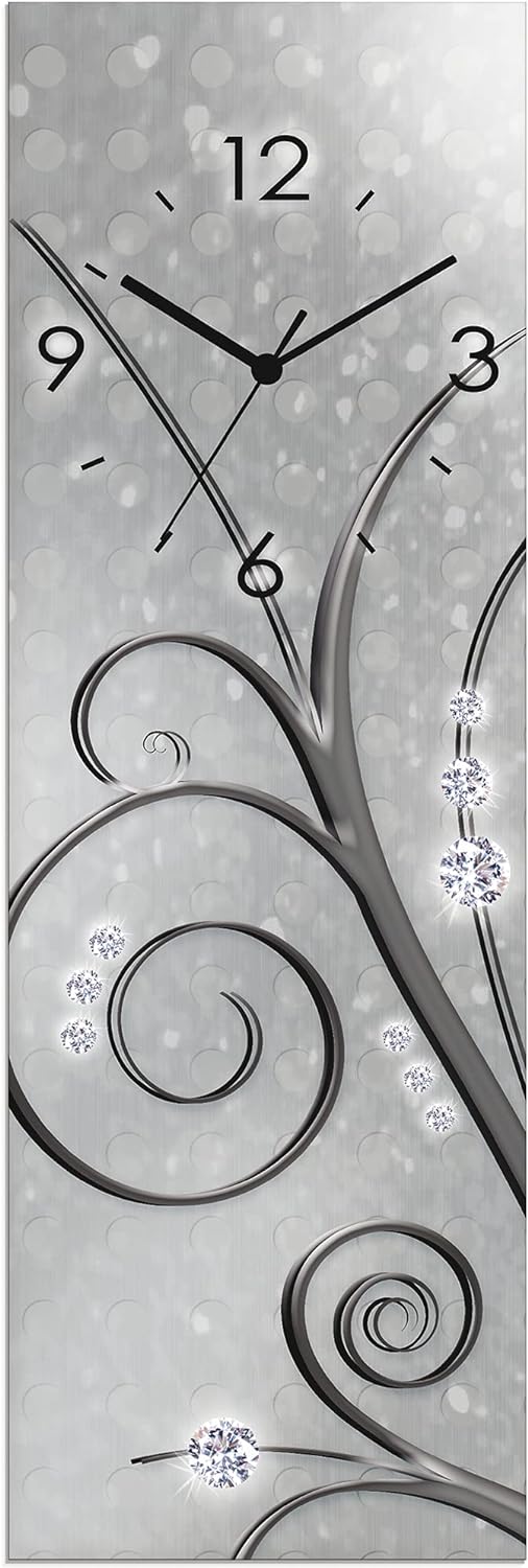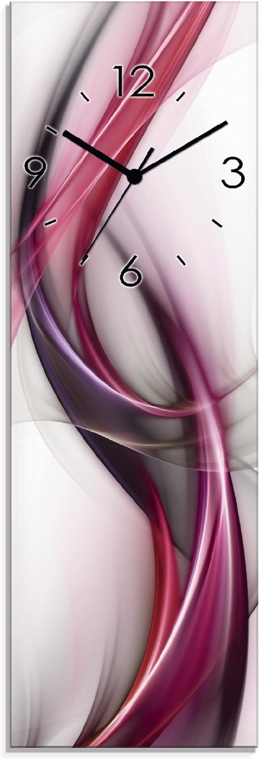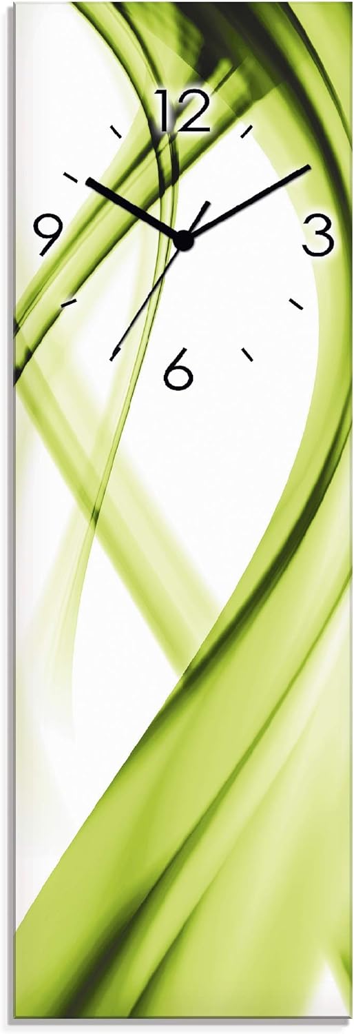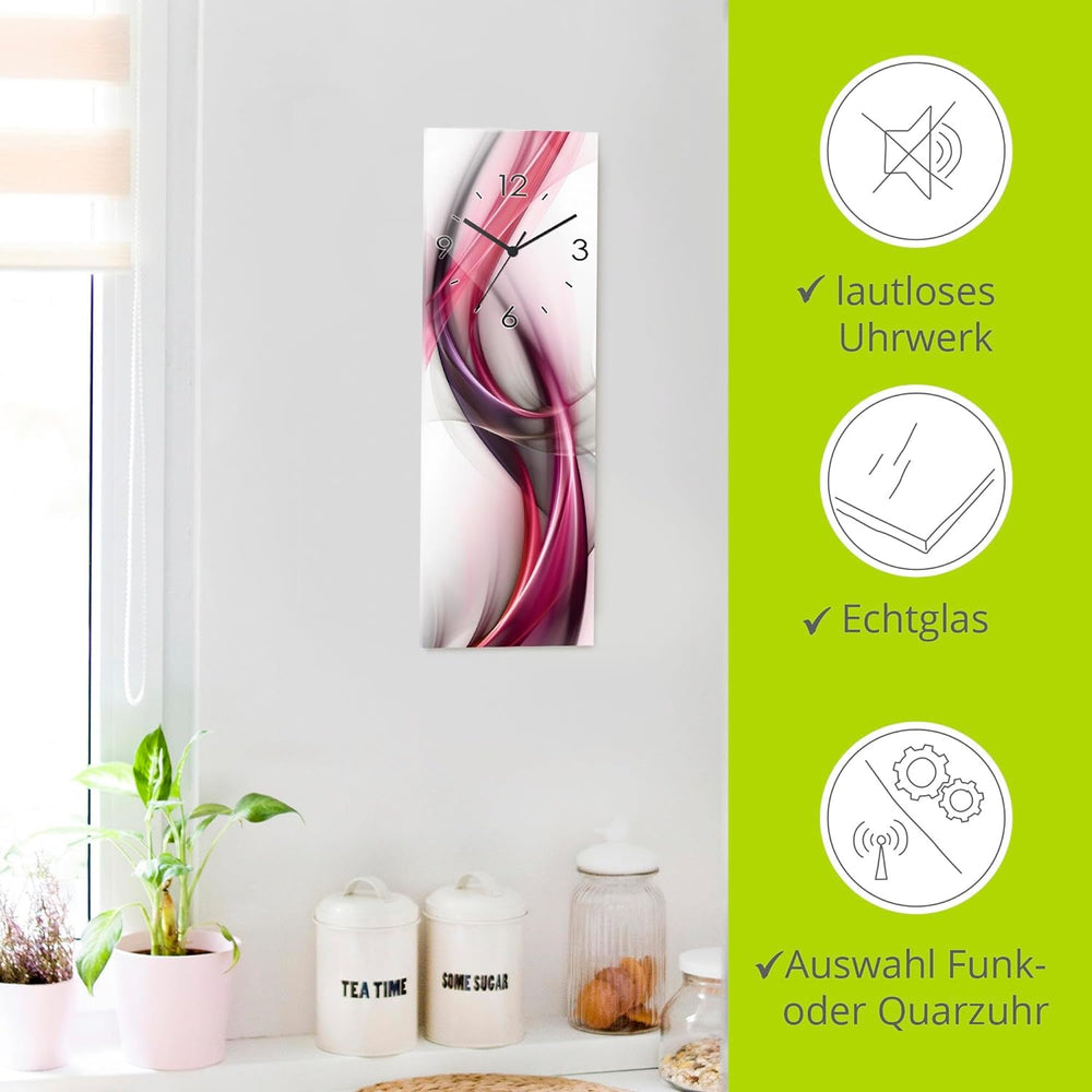 ARTLAND Wanduhr ohne Tickgeräusche Glas Quarz Uhr 20x60 cm Rechteckig Lautlos Abstrakte Bilder Kunst