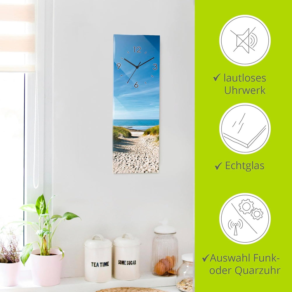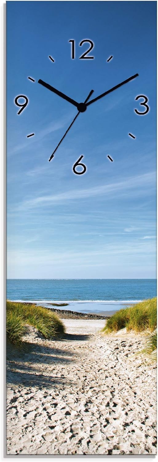 ARTLAND Wanduhr ohne Tickgeräusche Glas Quarzuhr 20x60 cm Rechteckig Lautlos Landschaft Strand Meer