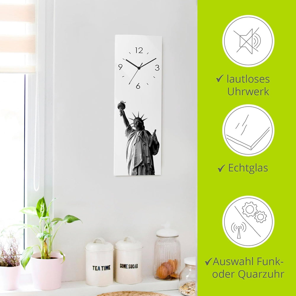 ARTLAND Wanduhr ohne Tickgeräusche Glas Quarzuhr 20x60 cm Rechteckig Lautlos Freiheitsstatue New Yor