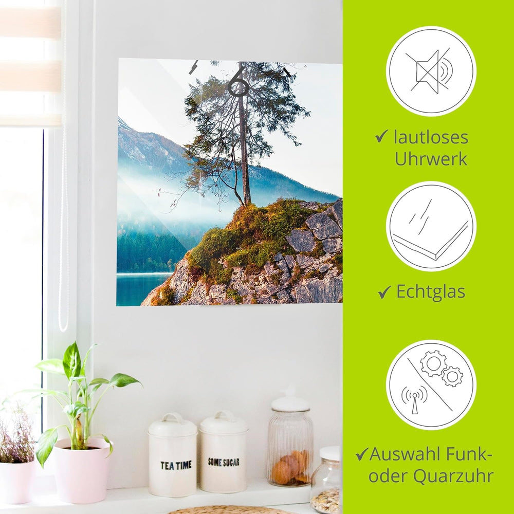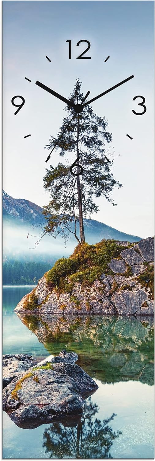 ARTLAND Wanduhr ohne Tickgeräusche Glas Quarzuhr 20x60 cm Rechteckig Lautlos Landschaft See Natur Pi