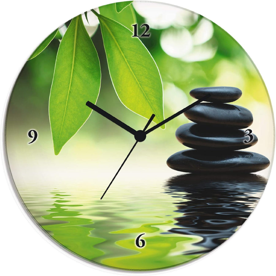 ARTLAND Wanduhr ohne Tickgeräusche Glas Funkuhr Ø 30 cm Rund Lautlos Zen Asiatisch Spa Steine See Yo