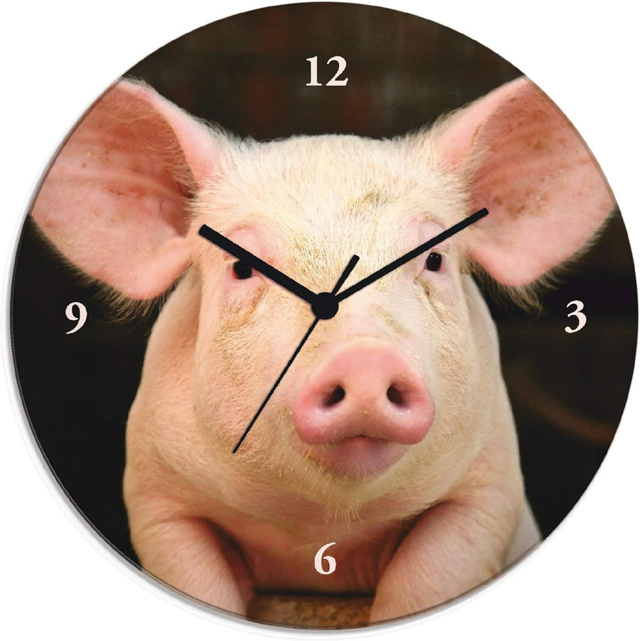 ARTLAND Wanduhr ohne Tickgeräusche Glas Funkuhr Ø 30 cm Rund Lautlos Tiere Schwein Lustig Hipster Au