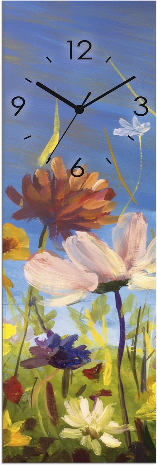 ARTLAND Wanduhr ohne Tickgeräusche Glas Quarzuhr 20x60 cm Rechteckig Lautlos Blumenbilder Natur Blum