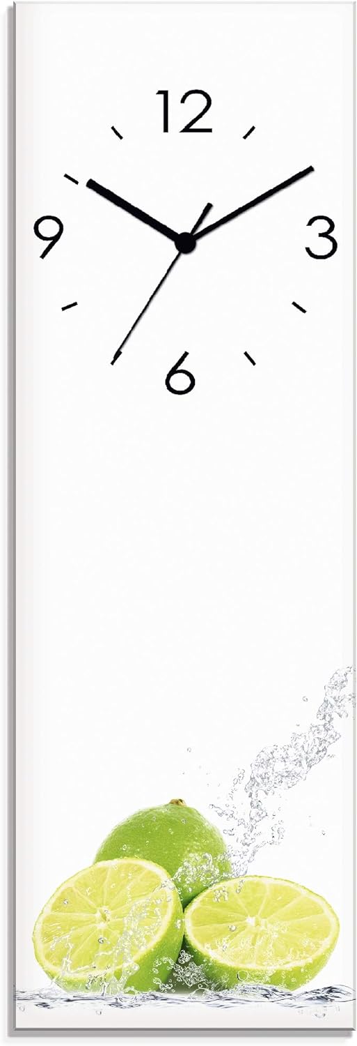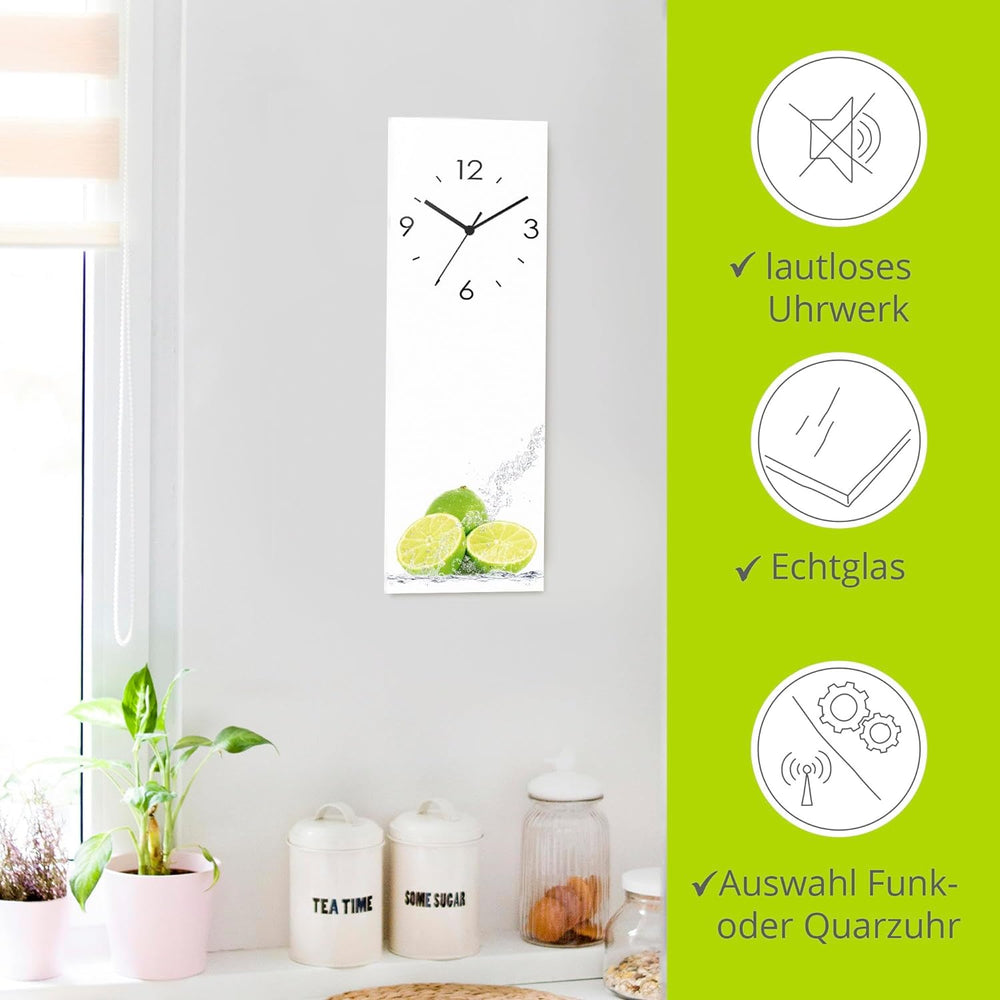 ARTLAND Wanduhr ohne Tickgeräusche Glas Quarzuhr 20x60 cm Rechteckig Lautlos Obst Früchte Limette im