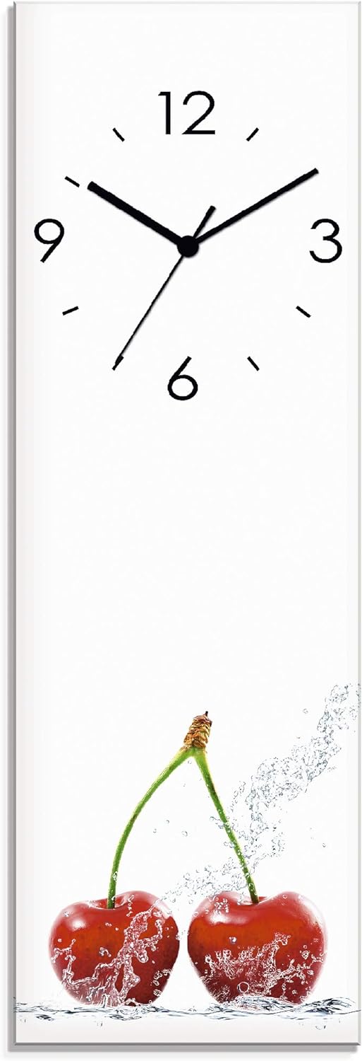 ARTLAND Wanduhr ohne Tickgeräusche Glas Quarzuhr 20x60 cm Rechteckig Lautlos Obst Früchte Kirsche im