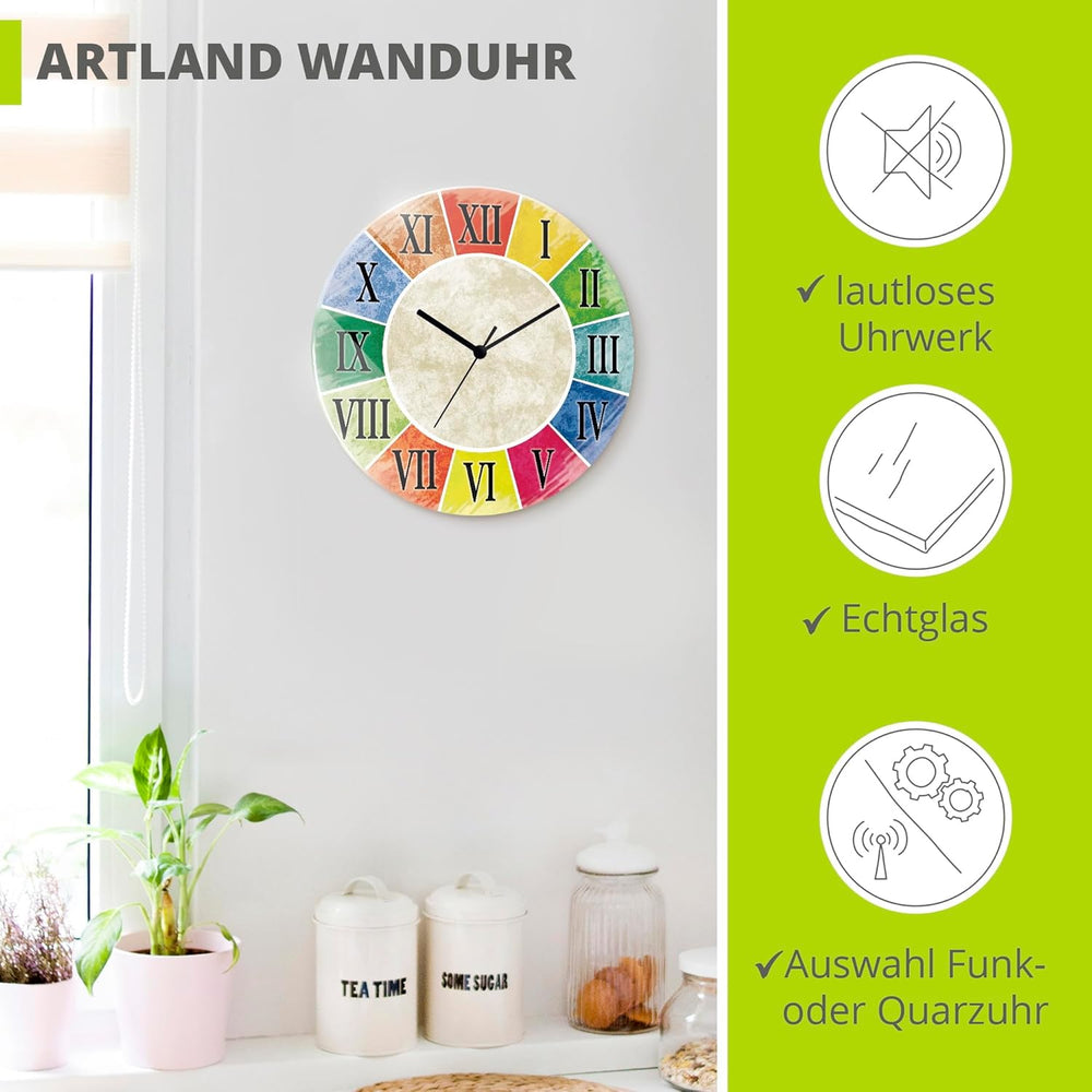 ARTLAND Wanduhr ohne Tickgeräusche Glas Funkuhr Ø 30 cm Rund Lautlos Römische Ziffern Zahlen Römisch