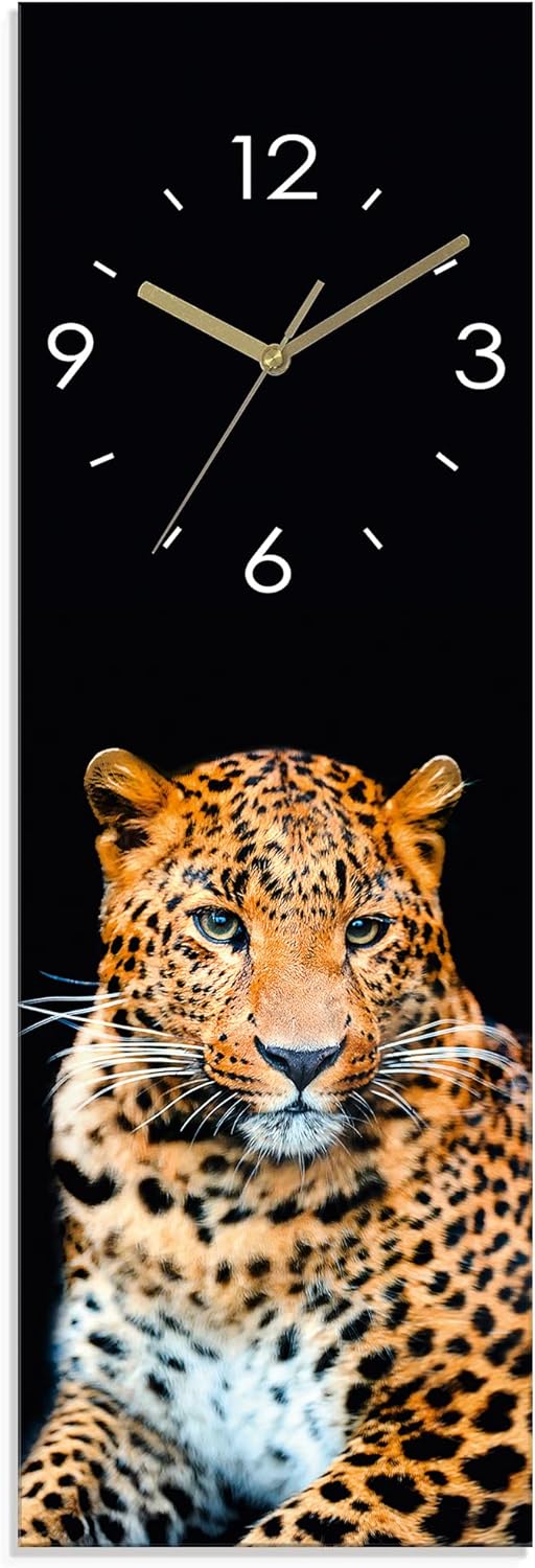 ARTLAND Wanduhr ohne Tickgeräusche Glas Quarzuhr 20x60 cm Rechteckig Lautlos Afrika Leopard Tiere Sa