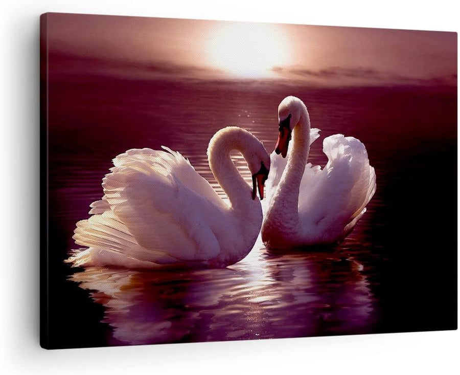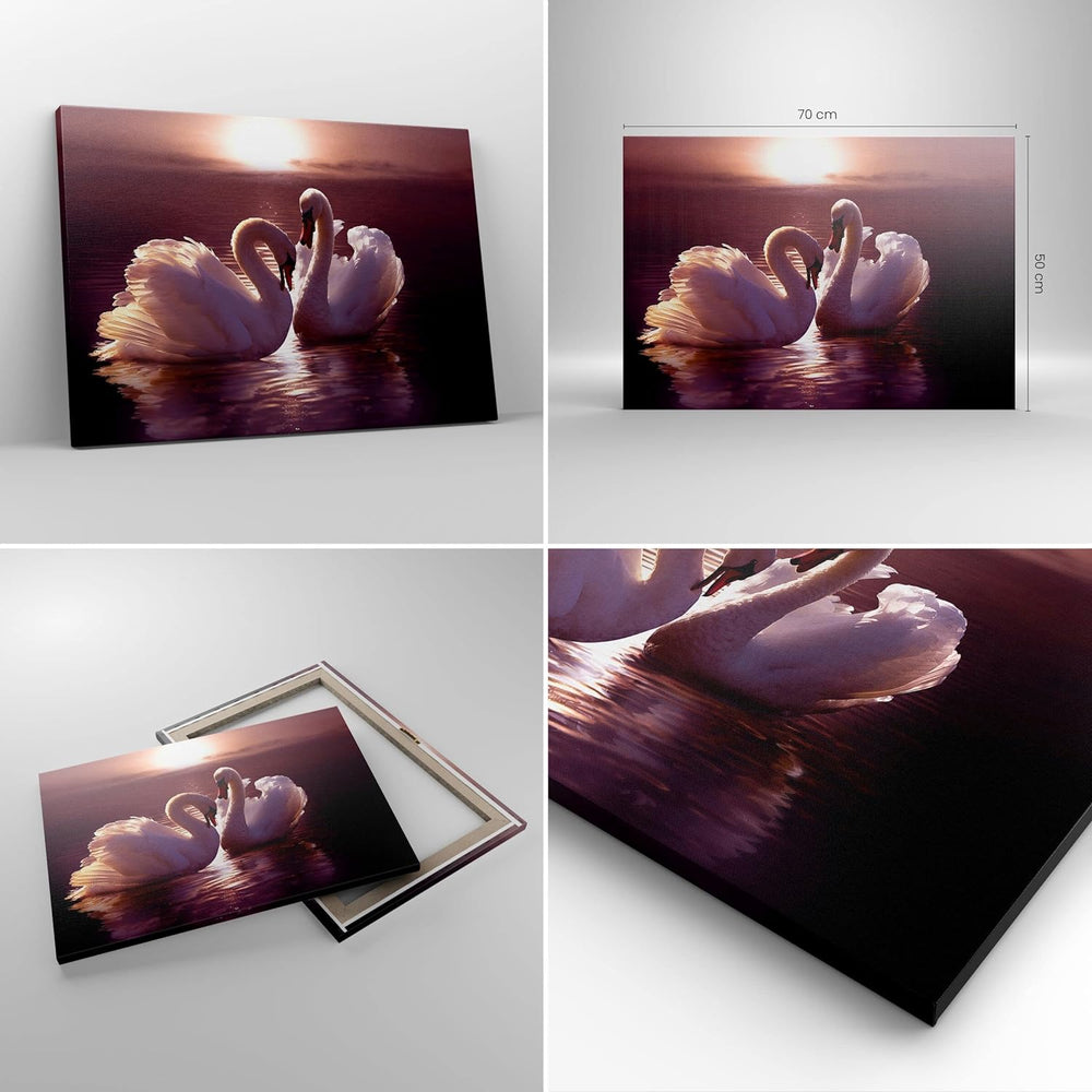 Bilder auf Leinwand Schwäne Nacht Liebe Leinwandbild mit Rahmen 70x50cm Wandbilder Dekoration Wohnzi