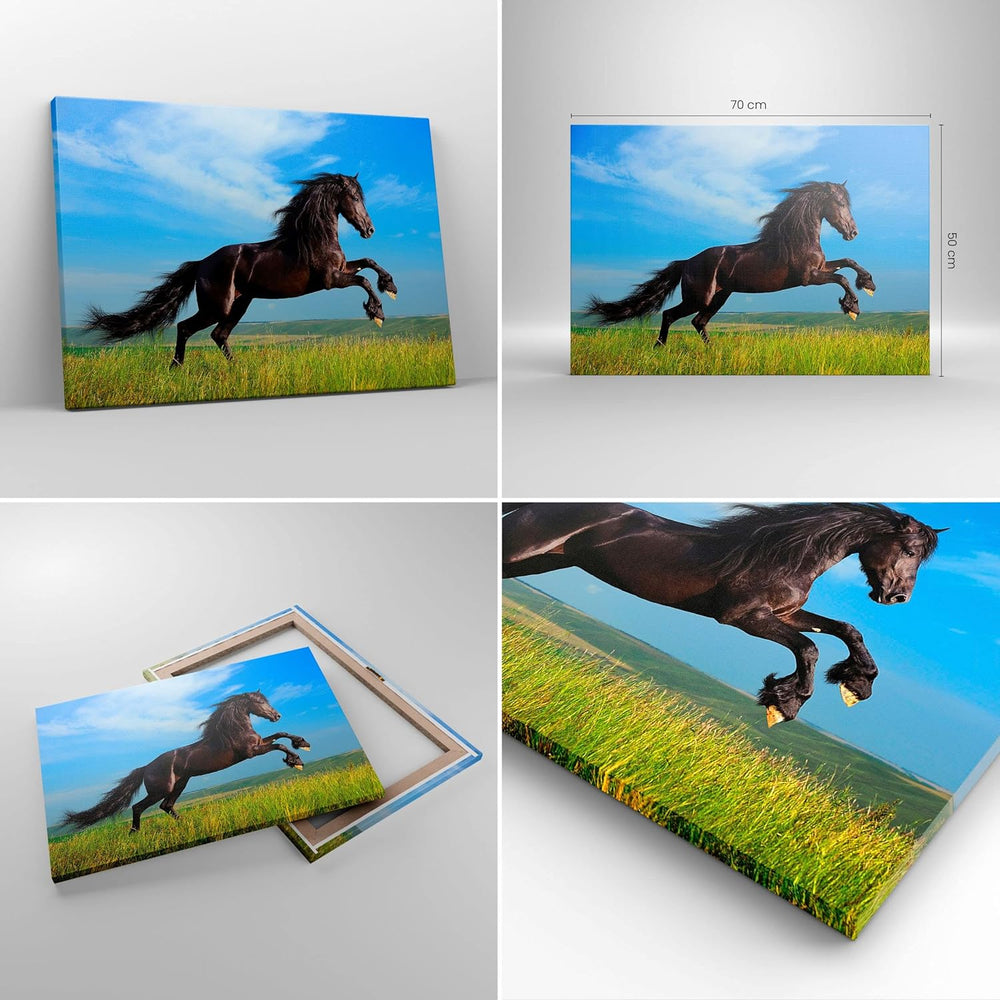 Bilder auf Leinwand Schwarzes Pferd Pferd Galopp Leinwandbild 70x50cm Wandbilder Dekoration Wohnzimm