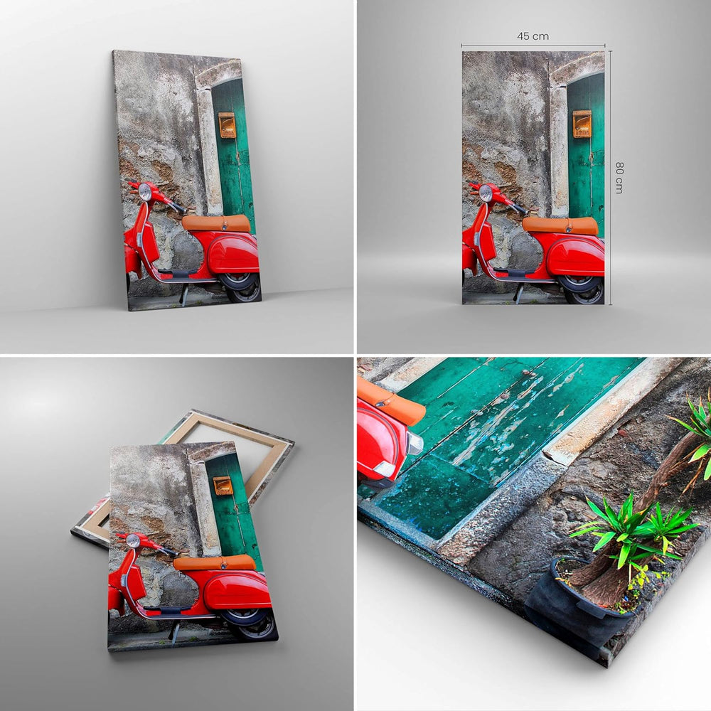 Bilder auf Leinwand Scooter transport italien retro Leinwandbild mit Rahmen 45x80cm Wandbilder Dekor