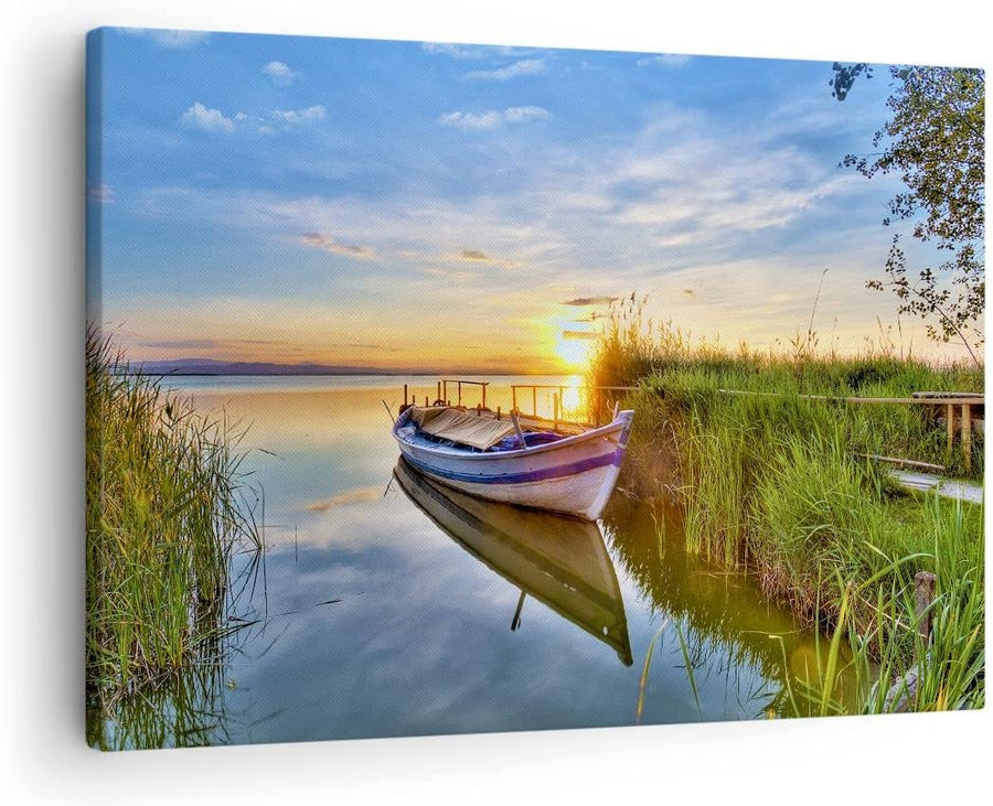Bilder auf Leinwand See Boot Wasser Leinwandbild mit Rahmen 70x50cm Wandbilder Dekoration Wohnzimmer