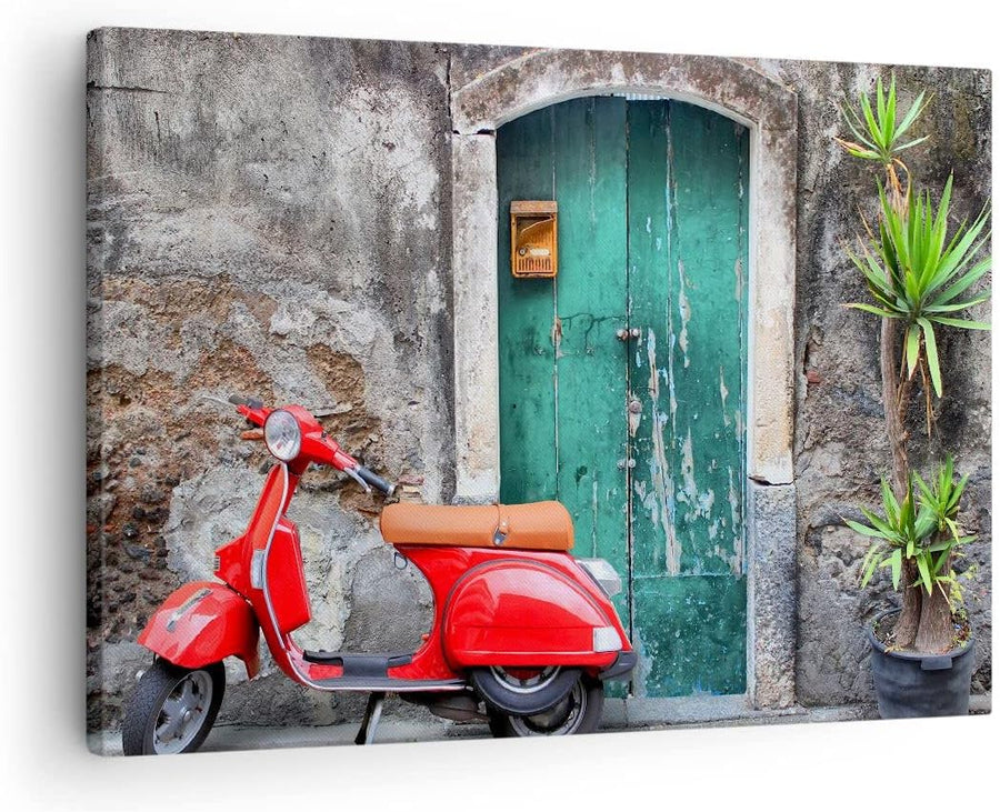 Bilder auf Leinwand Scooter transport italien retro Leinwandbild 70x50cm Wandbilder Dekoration Wohnz