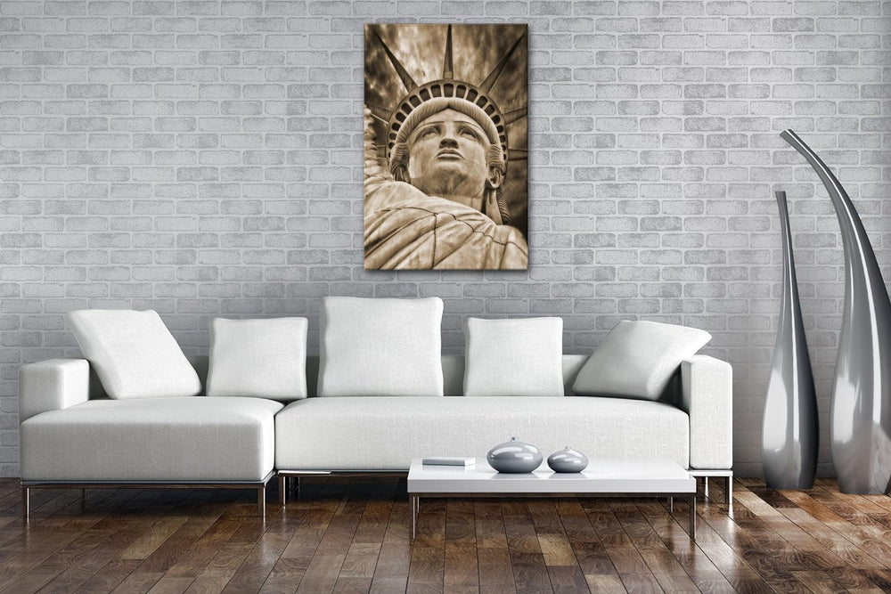 deyoli gigantische Freiheitsstatue Format: 80x60 Effekt: Sepia als Leinwandbild, Motiv fertig gerahm