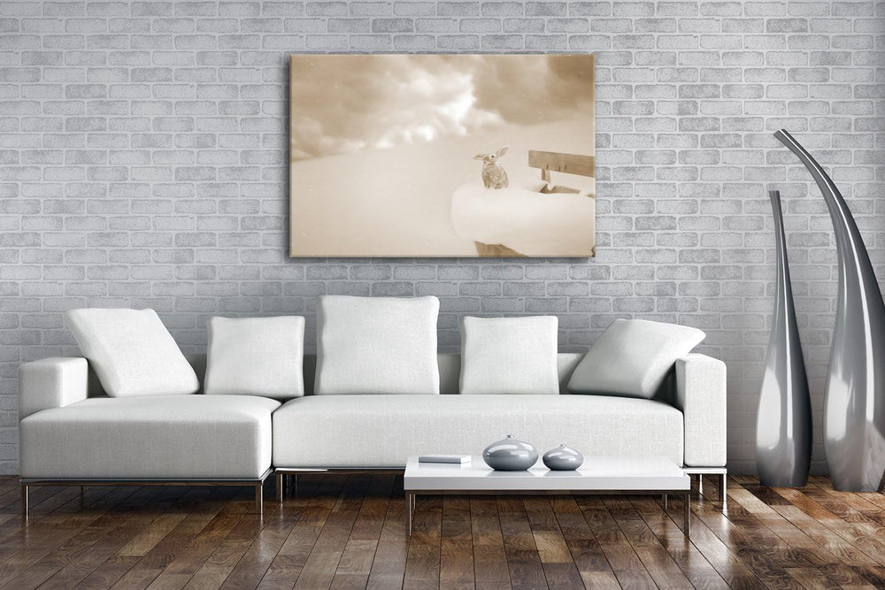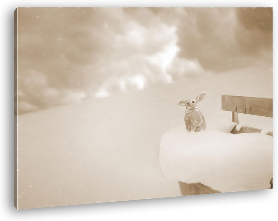 deyoli gezeichneter Hase in einer bezaubernden Schneelandschaft Format: 80x60 Effekt: Sepia als Lein