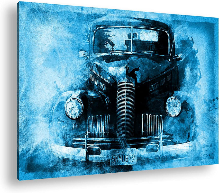 deyoli gezeichneter alter Oldtimer Format 80x60 Effekt: Monocrome Blau als Leinwandbild, Motiv ferti