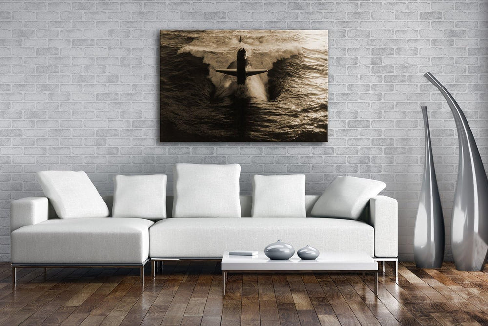 deyoli gewaltiges U-Boot Format: 80x60 Effekt: Sepia als Leinwandbild, Motiv fertig gerahmt auf Echt
