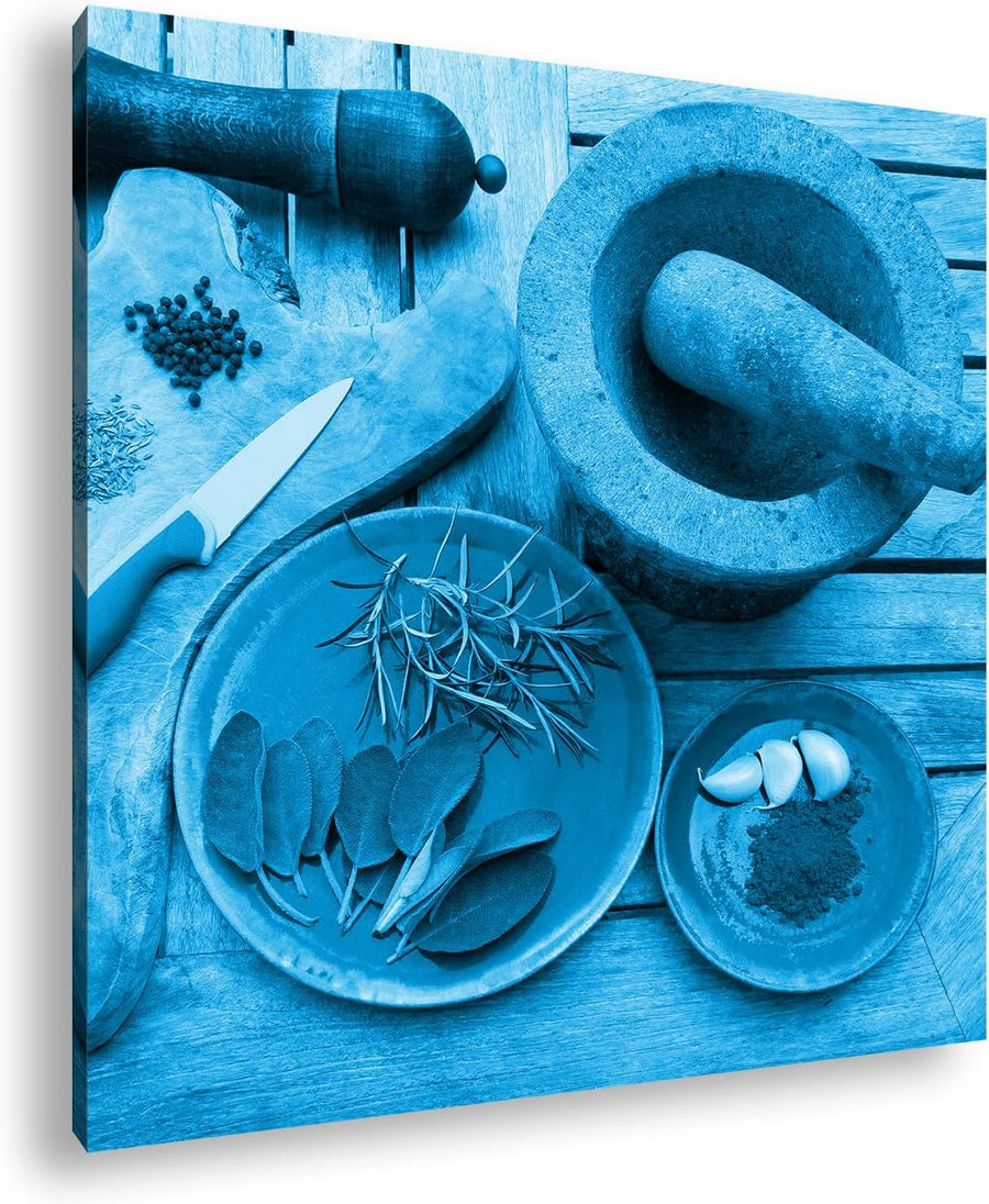 deyoli Gewürze mit einem Mörser Format: 60x60 Effekt: Monocrome Blau als Leinwandbild, Motiv fertig