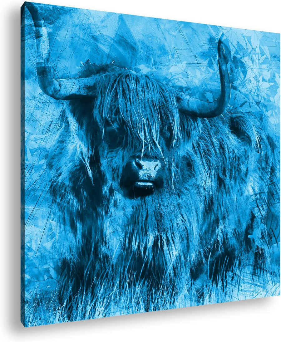 deyoli gezeichneter Stier Format: 60x60 Effekt: Monocrome Blau als Leinwandbild, Motiv fertig gerahm