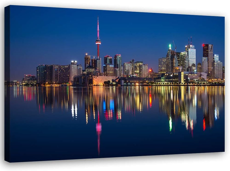 Feeby Wandbild Toronto Druckbild Leinwandbild Stadt Blau 100x70 cm Leinwandbild 100x70 cm Blau_d, Le