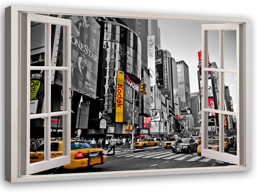 Feeby Wandbild Times Square Druckbild Leinwandbild Fenster-Illusion Grau 90x60 cm Leinwandbild 90x60