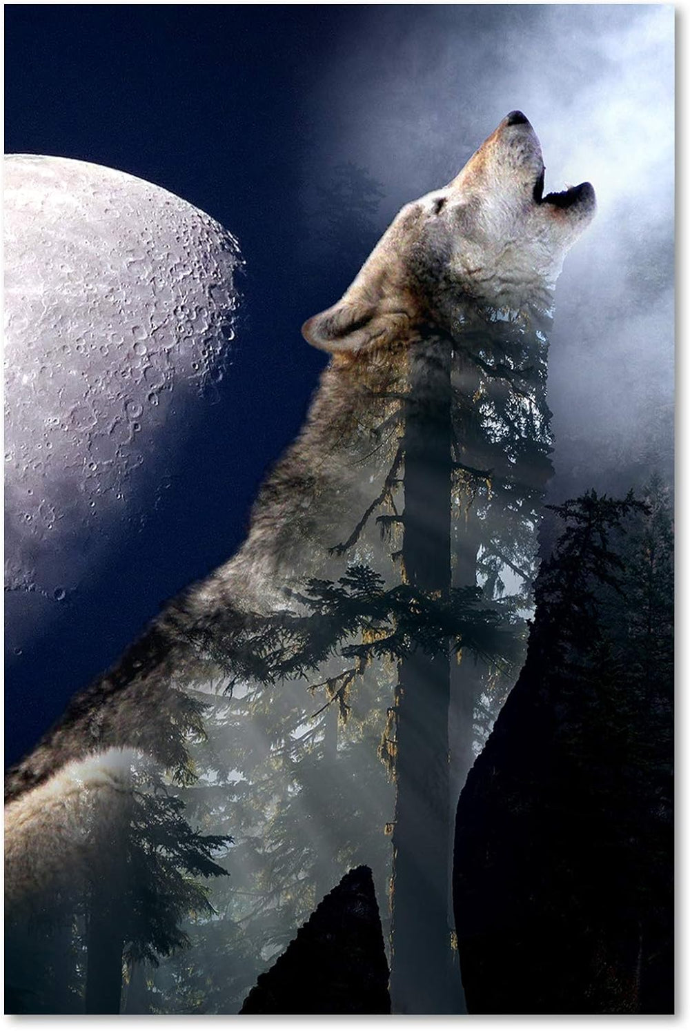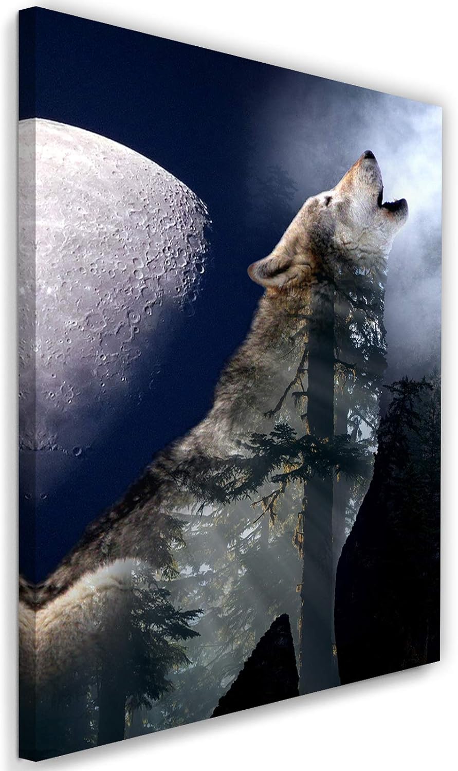 Feeby Wandbild Wolf Druckbild Leinwandbild Mond Blau 100x70 cm Leinwandbild 100x70 cm Blau_c, Leinwa