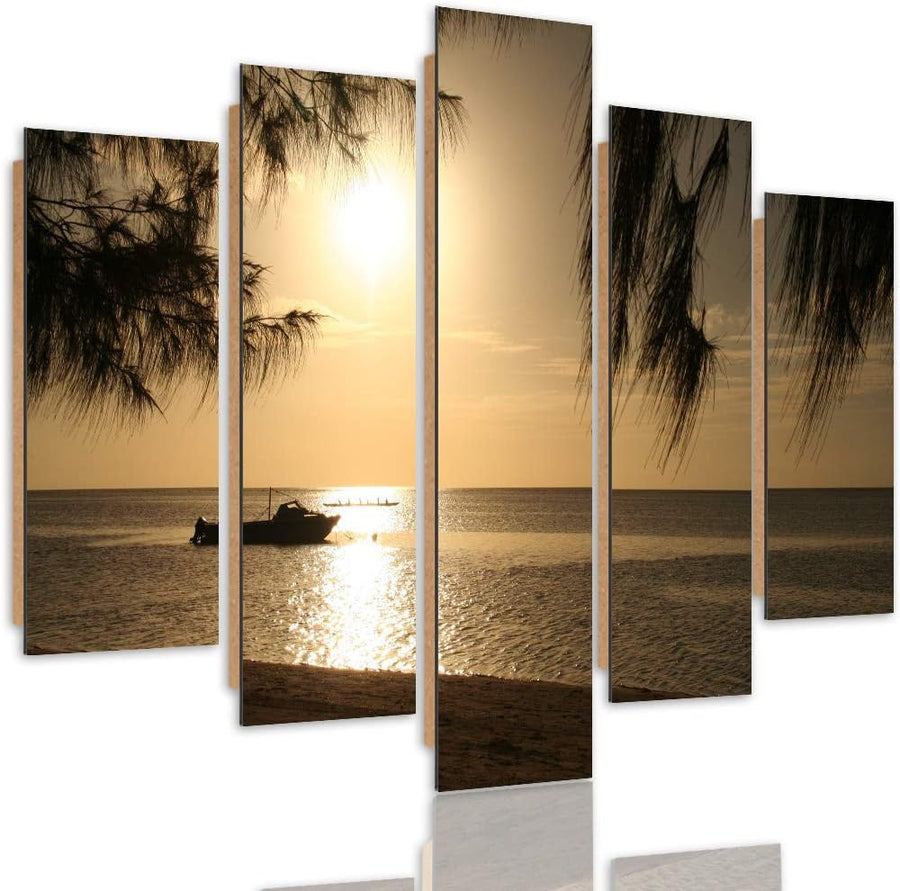 Feeby Wandbild Strand 200x100 cm Deco Panel 5 Teilig XXL Kunstdruck Meer Boot braun Deco Panel XXL 2